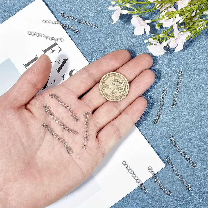 W opakowaniu znajduje się 20 łańcuszków wykonanych ze stali szlachetnej - stal nierdzewna. Służą do przedłużania obwodu naszyjników i bransoletek. Mogą też stanowić ozdobne wykończenie, zwłaszcza jeśli zakończymy je jakąś małą zawieszką. Bardzo solidnie wykonane.