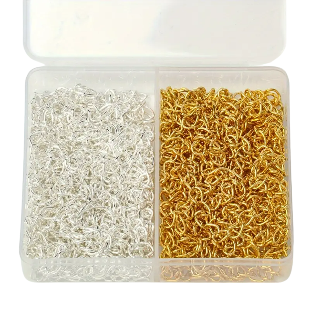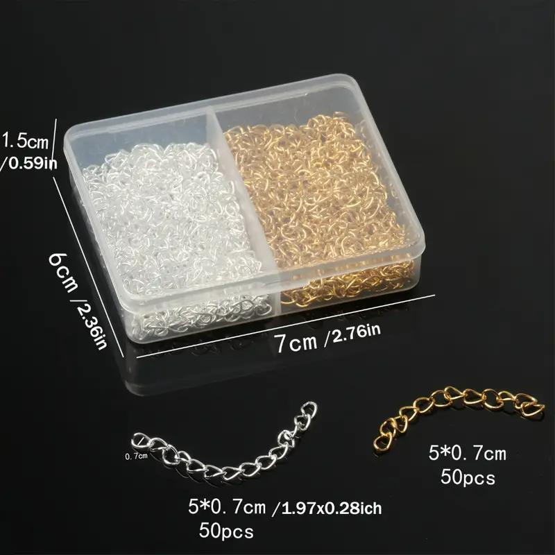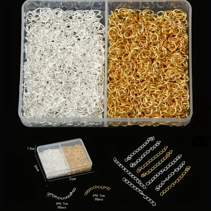 W opakowaniu znajduje się 100 łańcuszków wykonanych z metalu. Służą do przedłużania obwodu naszyjników i bransoletek. Mogą też stanowić ozdobne wykończenie, zwłaszcza jeśli zakończymy je jakąś małą zawieszką. Bardzo solidnie wykonane.