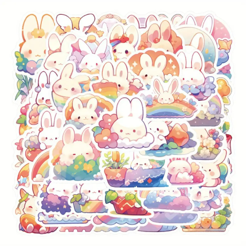NWL12 Naklejki STICKER BOMB WLEPY wlepki TĘCZA KRÓLICZEK ZAJĄCZEK 50szt
