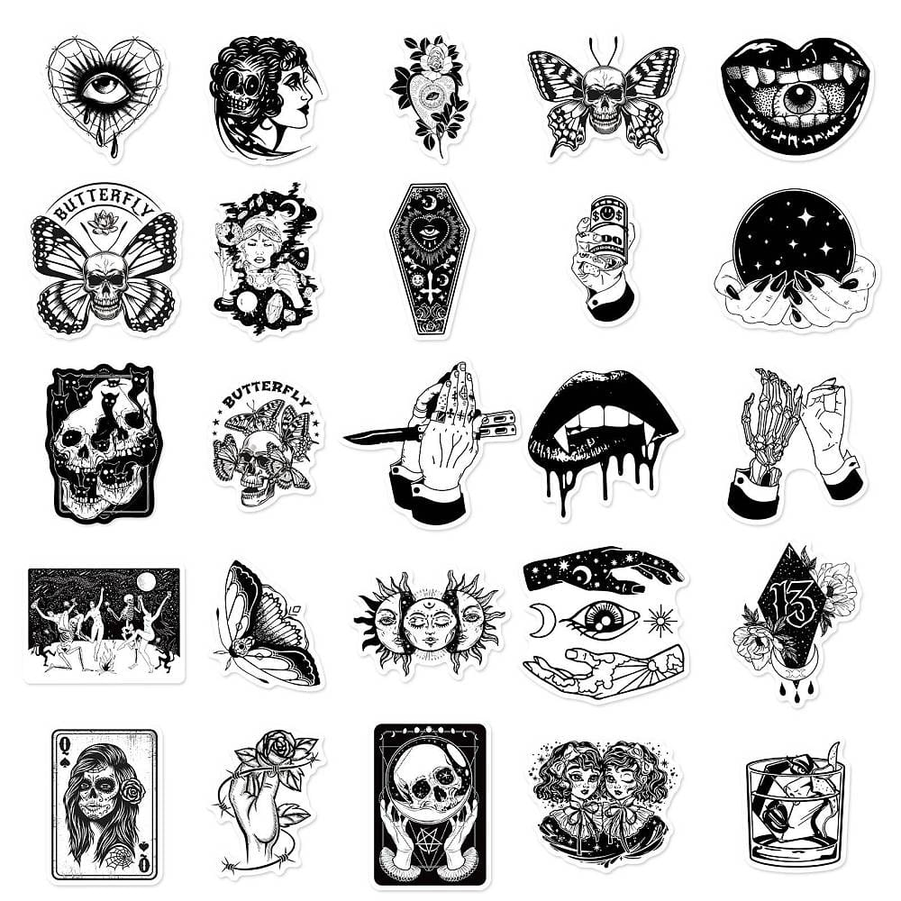NWL32 Naklejki STICKER BOMB WLEPY wlepki GOTYK HORROR CZASZKA 50szt