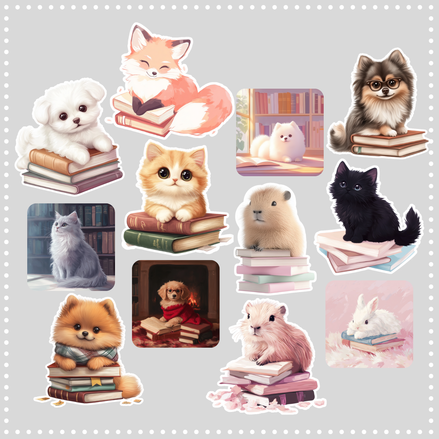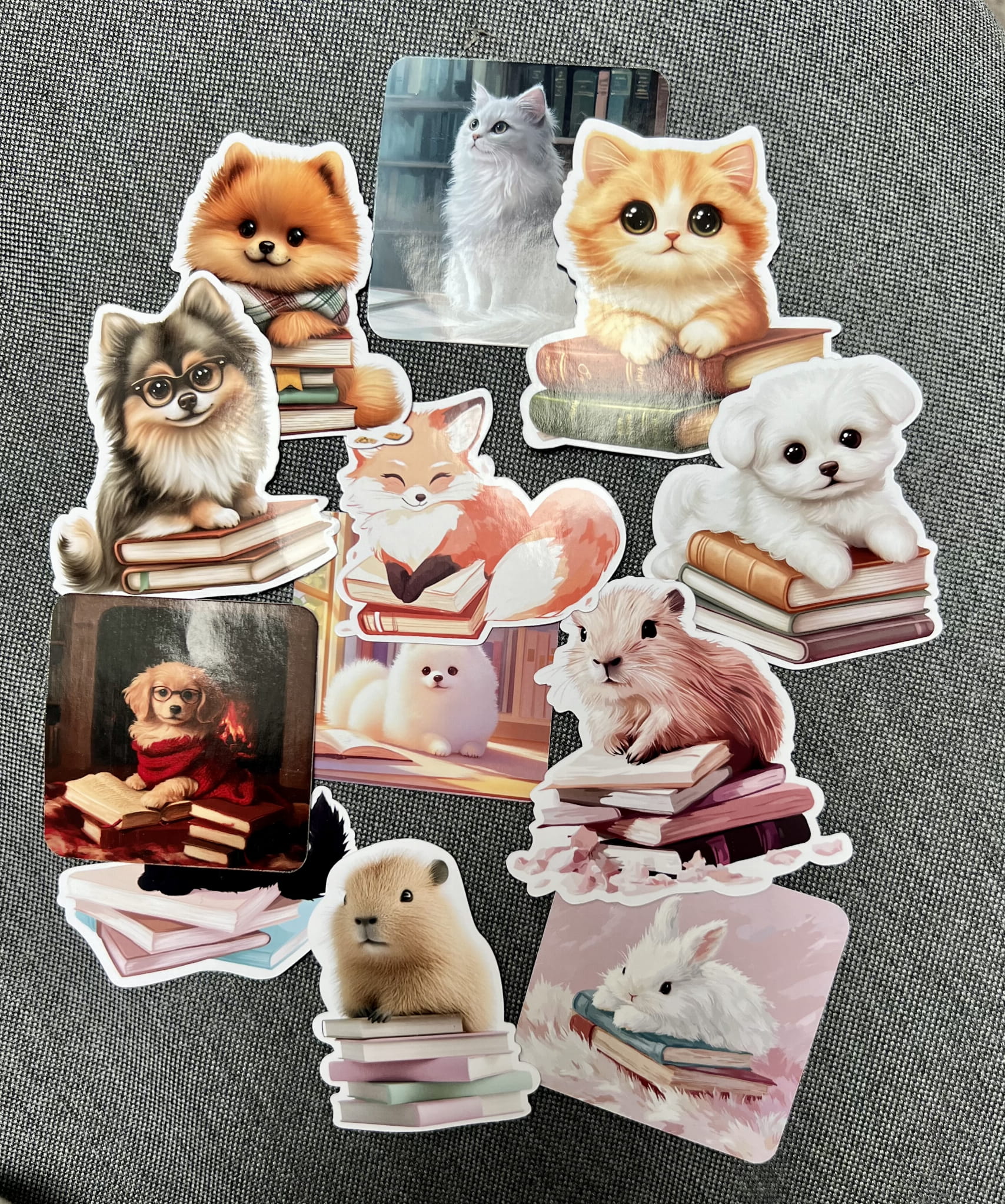 Naklejki pojedyncze HM2 rękodzieło zestaw ZWIERZĄTKA i KSIĄŻKI BOOKS 12szt