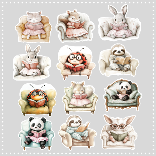 Naklejki pojedyncze HM4 rękodzieło zestaw ZWIERZAKI SŁODZIAKI i KSIĄŻKI BOOKS 12szt