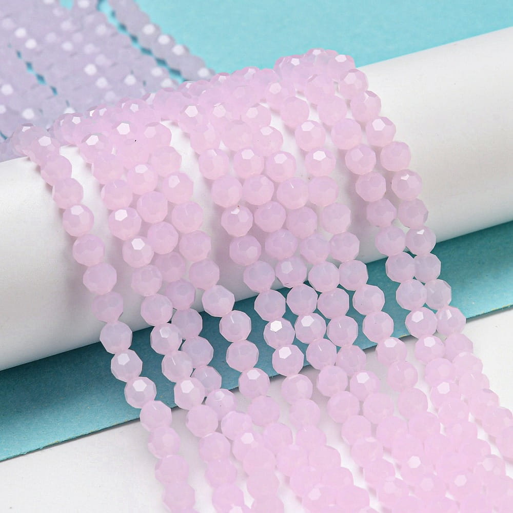 OP8 Koraliki szklane opalizujące pastelowe faset Opallo 4mm SZNUR różowe jasne