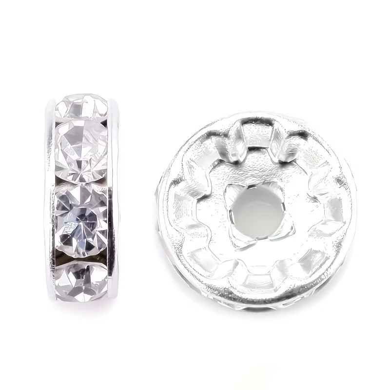 Zestaw przekładki z cyrkoniami. Cyrkonie są wykonane z bardzo dobrej jakości szkła, przepięknie się mienią. Te przekładki idealnie nadają się do ozdobienia bransoletek z koralikami oraz naszyjników czy kolczyków.