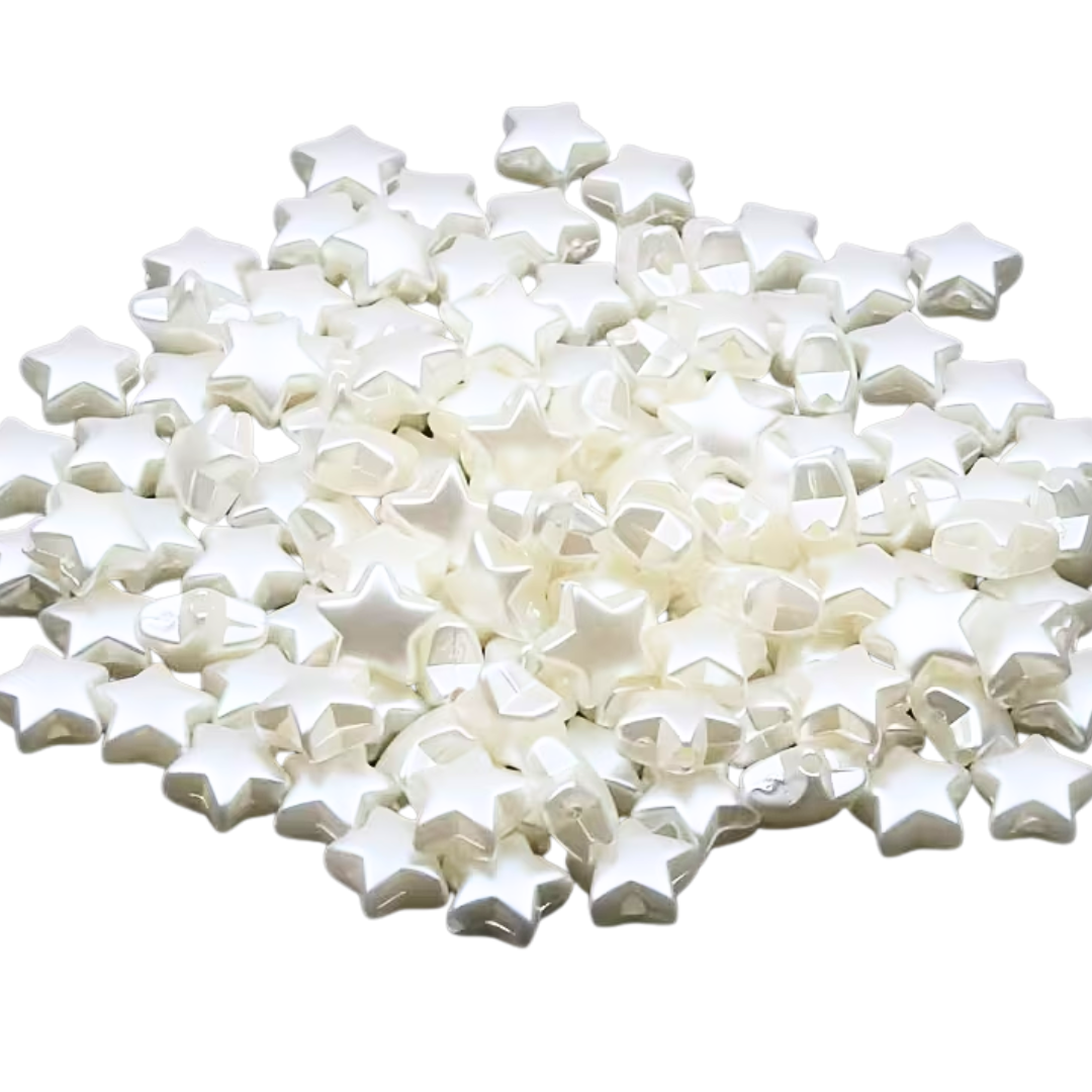 Przepiękne koraliki perłowe, wykonane z akrylu. Kształt gwiazdka, gwiazdki wypukłe pękate.