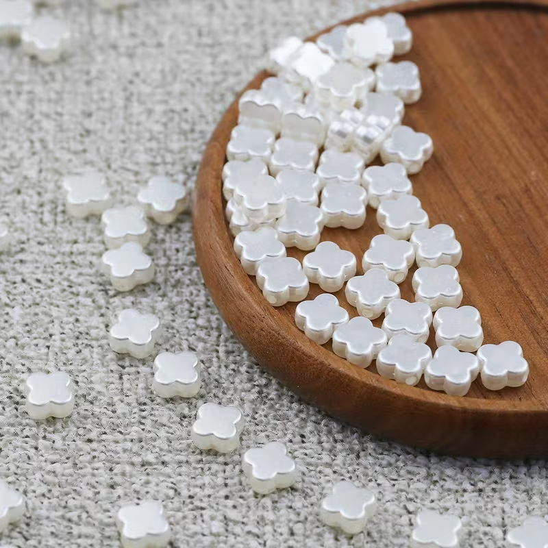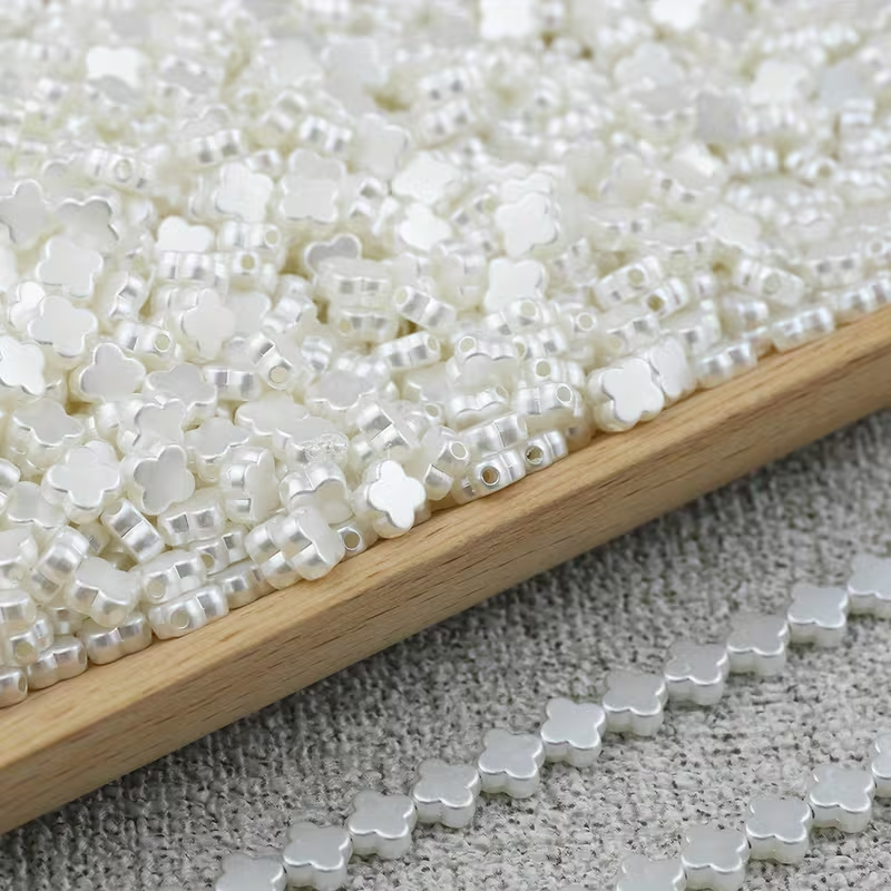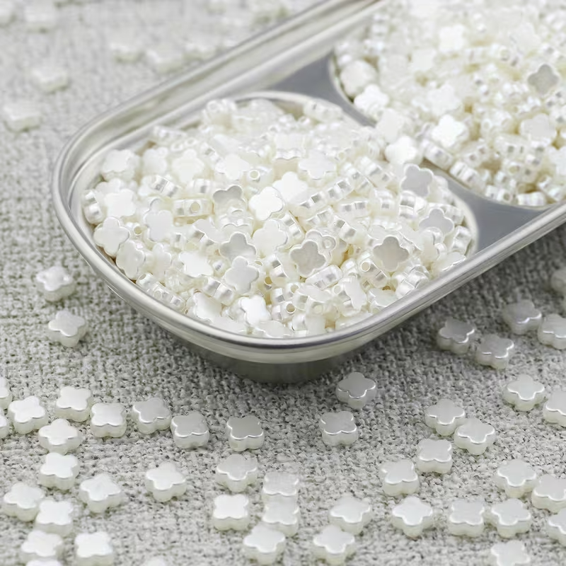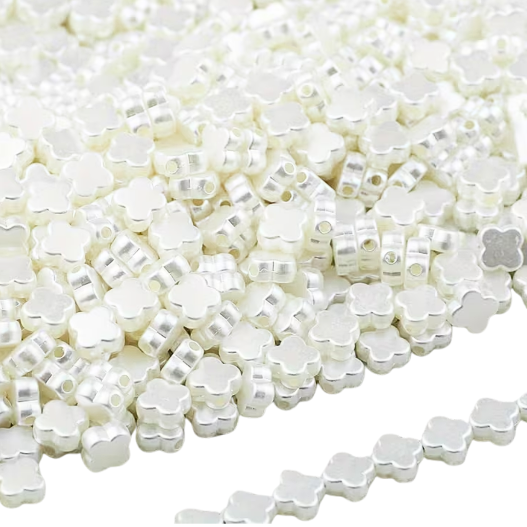 Przepiękne koraliki perłowe, wykonane z akrylu. Kształt kwiatek kwiatuszek czterolistna koniczynka.