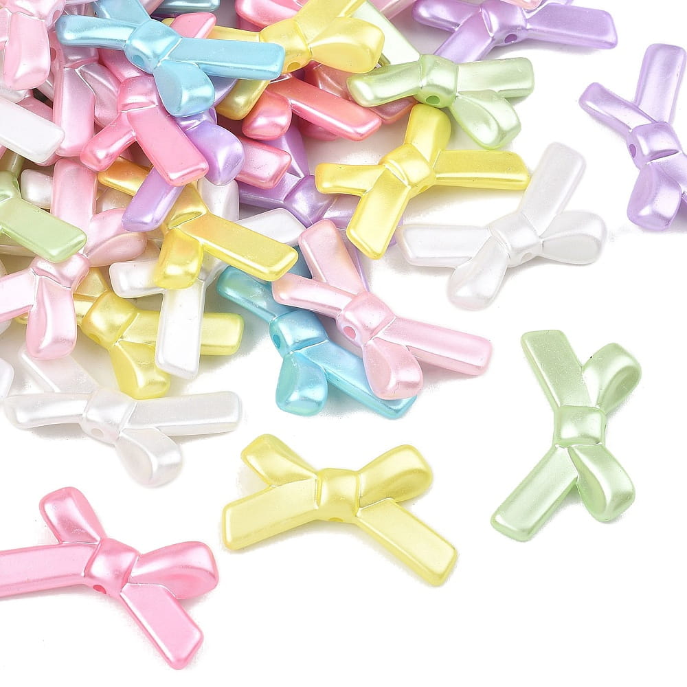 PER32 Koraliki akrylowe perłowe KOKARDKA kokardki duże 34mm mix 6szt