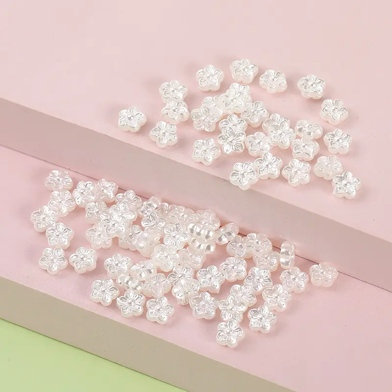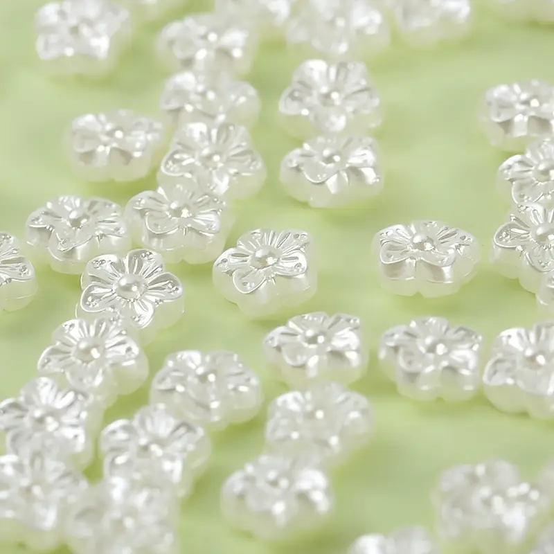 Przepiękne koraliki perłowe, wykonane z akrylu. Kształt kwiatek kwiatuszek.