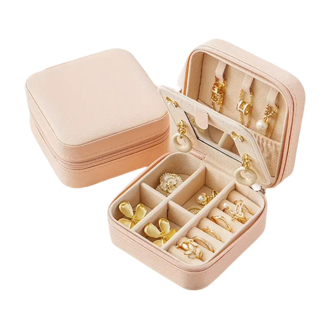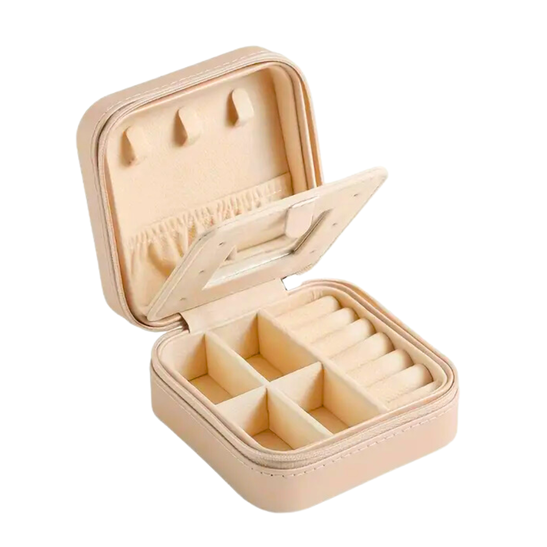 Szkatułka na Twoje łańcuszki, kolczyki i pierścionki. Niewielki rozmiar pozwala na zabranie jej ze sobą na wczasy, wycieczkę czy wyjazd do rodziny. Jest niewielkie, ale bardzo pakowne, ponieważ posiada mnóstwo przegródek. Dla większej wygody w szkatułce znajdziesz ruchome lusterko, możesz z niego korzystać zakładając biżuterię.