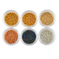 Piękne japońskie szklane koraliki rokail rocaille, powlekane metalicznie - galwanizowane. Są bardzo ładnie wykonane, nie tracą połysku, równe i kształtne. To idealne koraliki, żeby wykonać nimi haft koralikowy, dobre też do wykonywania bransoletek szczęścia. Robisz bransoletki szczęścia? Te koraliki są właśnie dla Ciebie! Bardzo ładnie prezentują się na jedwabnej nici wraz ze szlifowanymi koralikami z naturalnych kamieni. Zapakowane w duży plastikowy słoiczek zakręcany o średnicy około 3cm.