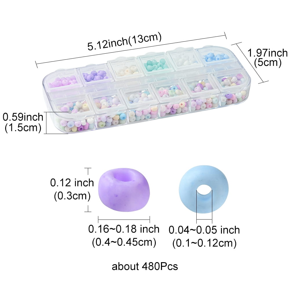 ROZ3 Koraliki rocaille 6/0 szklane drobne matowe PASTELOWE KOLORY 4x3mm 480szt kasetka