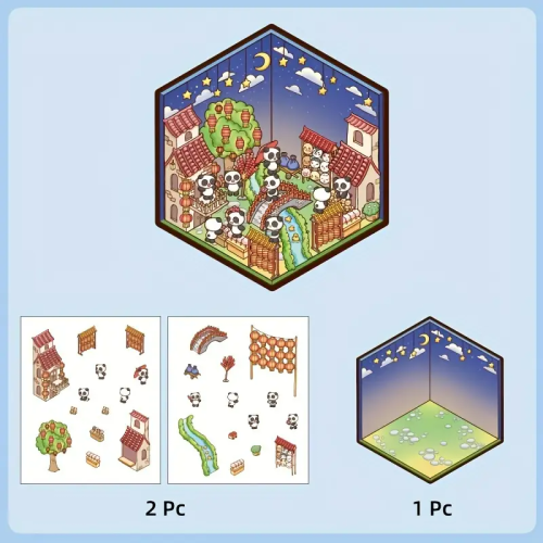 S3D13 Naklejki 3D DIY z Tiktoka Relaks MINI ŚWIAT PANDA festiwal latarni