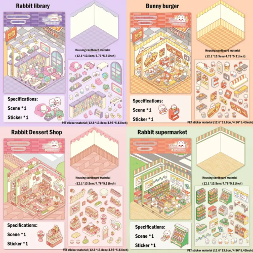 Na moich innych aukcjach pozostałe wzory naklejek antystresowych: pralnia, sklep spożywczy, piekarnia, domówka/spotkanie w bibliotece, corner shop/sklepik na rogu i wiele wiele innych.