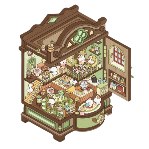Zacznij wspaniałą zabawę z naklejkami 3D. Zestaw składa się z kartonowego rzutu wnętrza skrzyni, już wyciętego, do tego aż dwa duże arkusze naklejek z elementami wyposażenia (meble, dywan, półki, inne) oraz drugi, z postaciami i ozdobami pomieszczenia - to śliczne zwierzątka, pieski, kotki, króliki, pandy, postacie osób i inne.