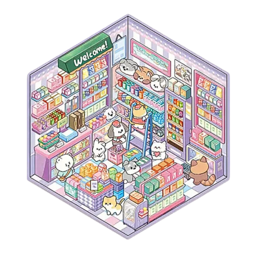 Na moich innych aukcjach pozostałe wzory naklejek antystresowych: pralnia, sklep spożywczy, piekarnia, domówka/spotkanie w bibliotece, corner shop/sklepik na rogu.