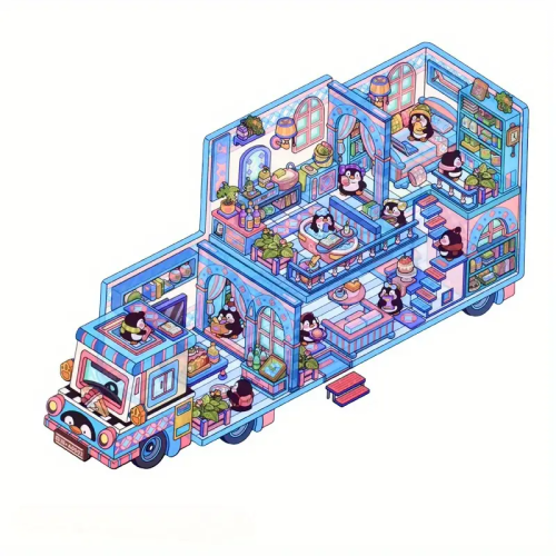 S3D61 Naklejki 3D DIY z Tiktoka CUTE Kamper Samochód PINGWINY