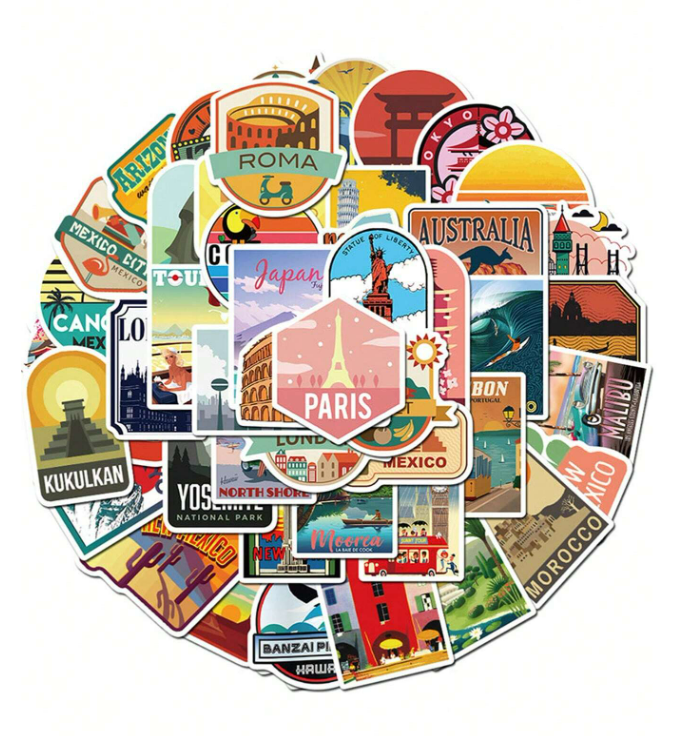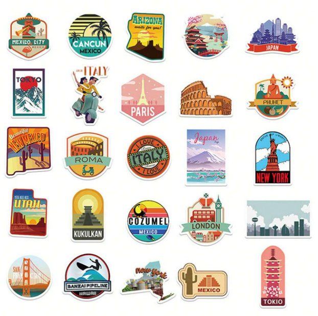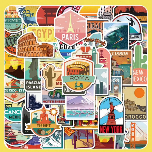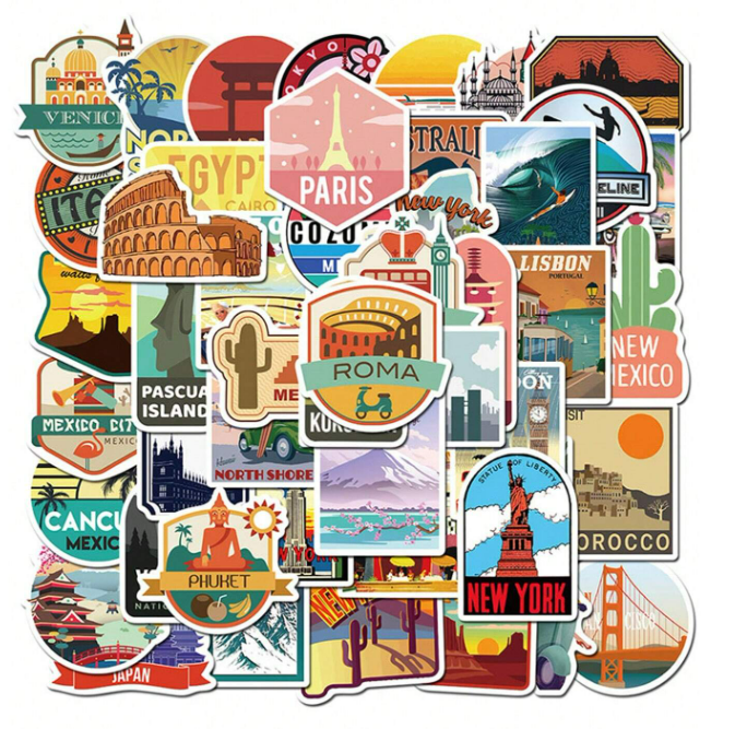 W10 Naklejki STICKER BOMB WLEPY wlepki motywacyjne PODRÓŻE laptop 50sztuk