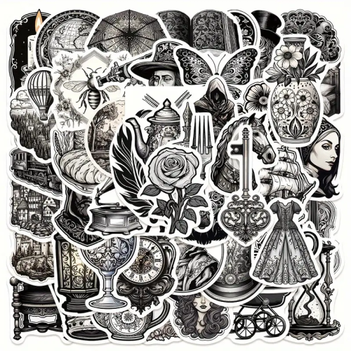 W104 Naklejki STICKER BOMB WLEPY wlepki DUŻE ŚREDNIOWIECZE RETRO 50szt