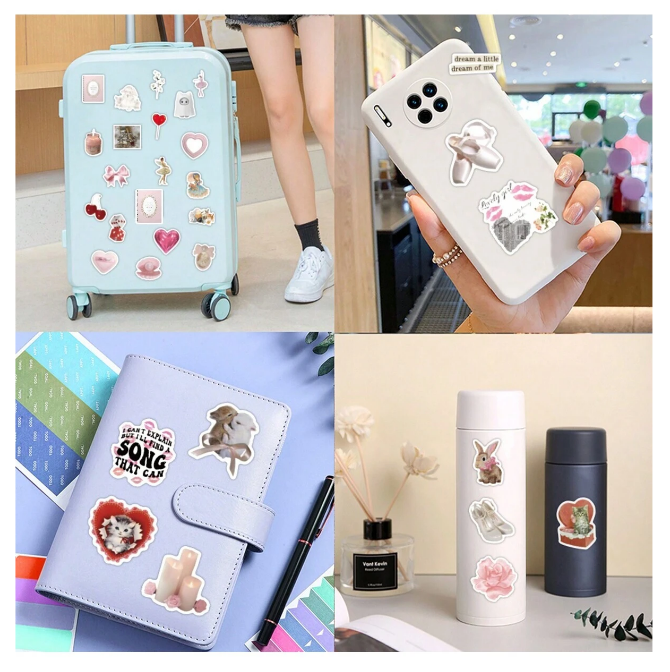 W opakowaniu foliowym. Bez trudu dają się oderwać, gdy zmienisz koncepcję zdobienia swoich przedmiotów. Każda naklejka to inny kształt i wzór, bez powtarzających się. Największa ma wymiar około 6cm. W zestawie są dokładnie te naklejki, które są widoczne na grafice. Naklejki doskonale nadają się do ozdabiania książek, laptopów i czytników ebooków, do ozdabiania telefonów komórkowych i tabletów, na pojazdy - rower, samochód, deskorolki i hulajnogi. Możesz ich używać, ozdabiając swoje książki, notesy, dzienniki i terminarze. Ogranicza Cię tylko Twoja wyobraźnia.