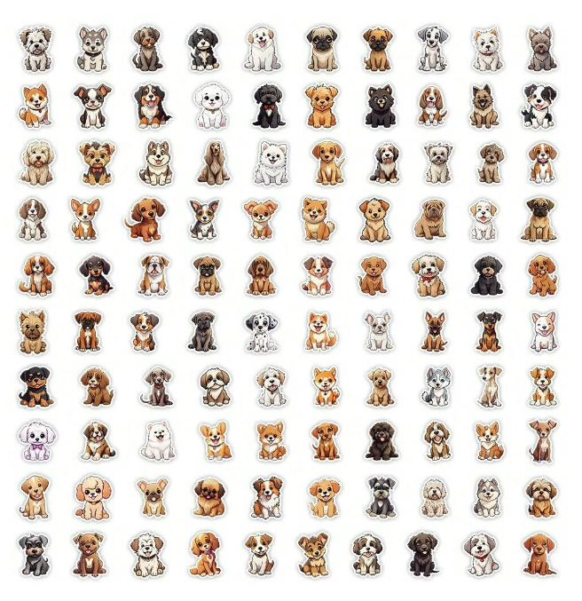 W117 Naklejki STICKER BOMB WLEPY MAŁE wlepki PIESKI SZCZENIAK PIESEK 100szt