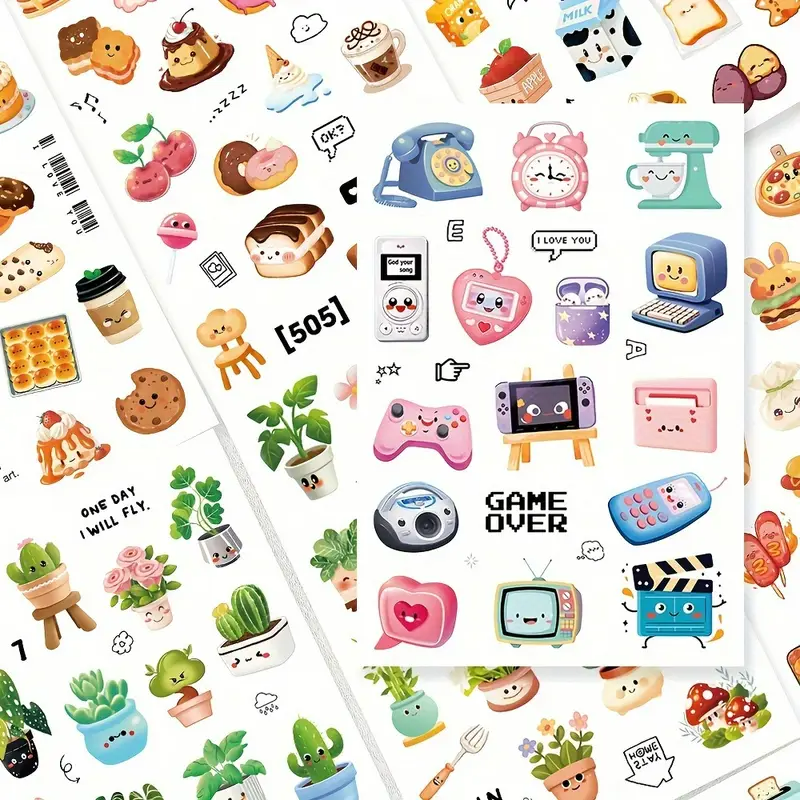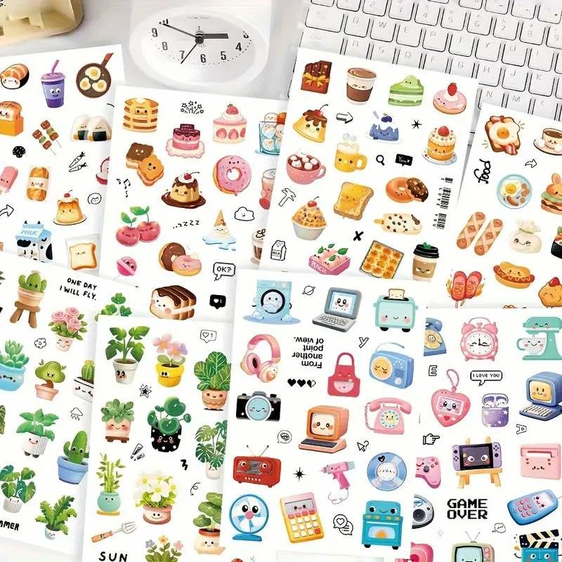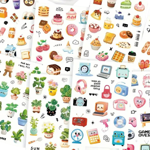 ZESTAW 8 arkuszy różnych NAKLEJEK winylowych - bardzo dobra jakość, wodoodporne. Wykonane z winylu. Matowa folia winylowa.