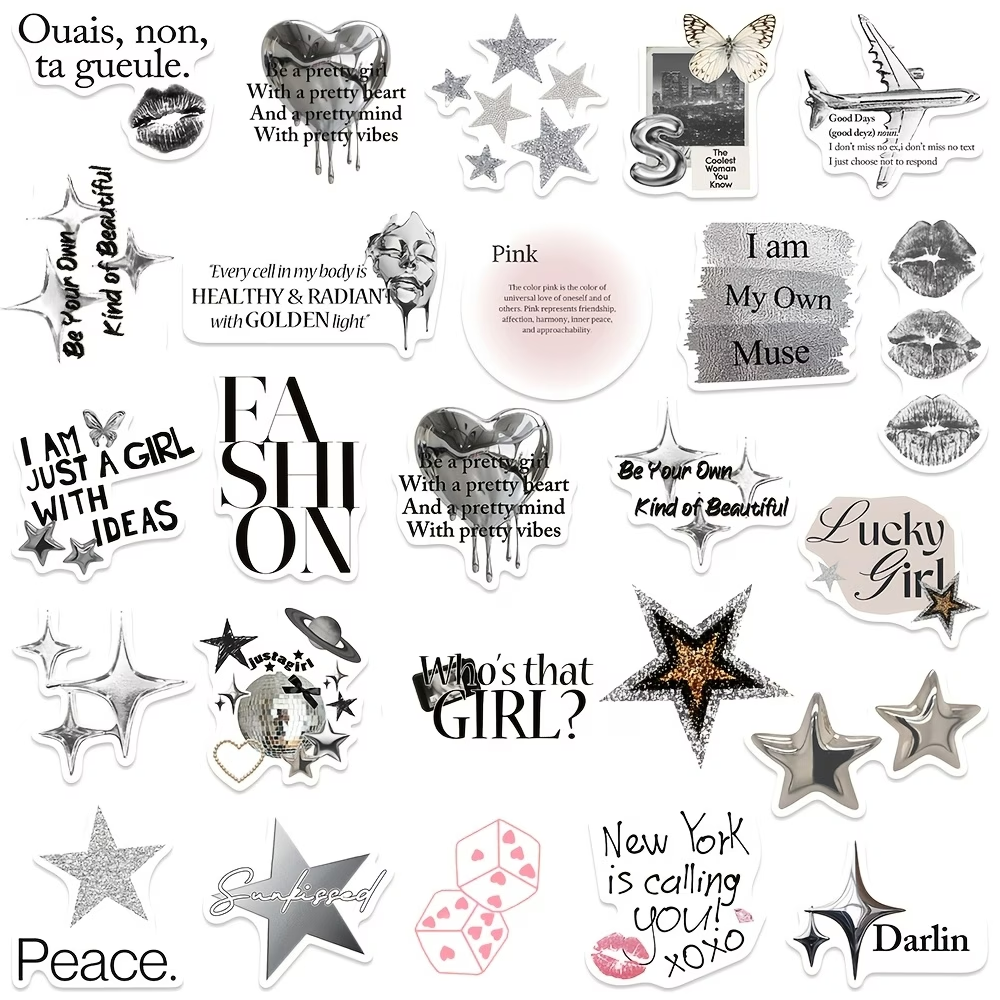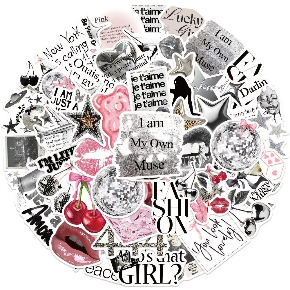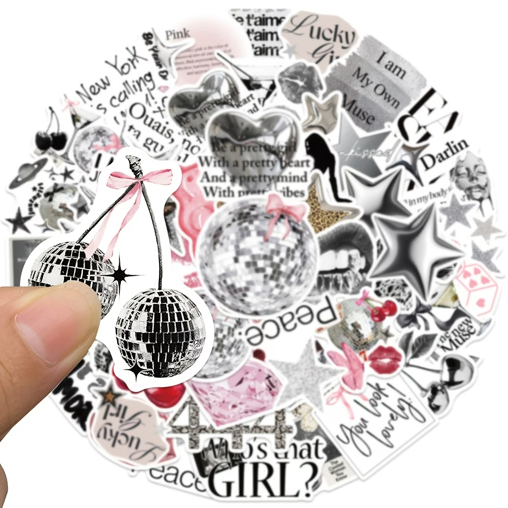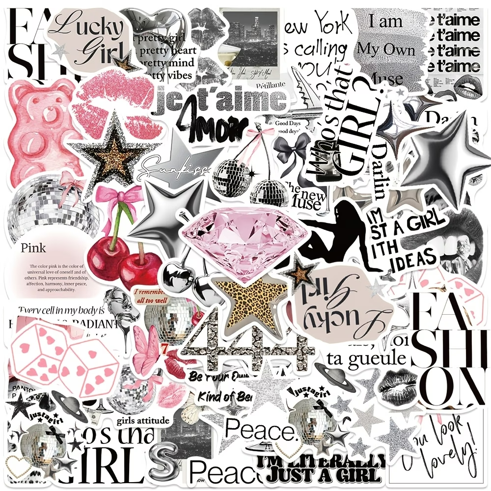 W241 Naklejki STICKER BOMB WLEPY wlepki GIRL BLACK & PINK silver 50szt