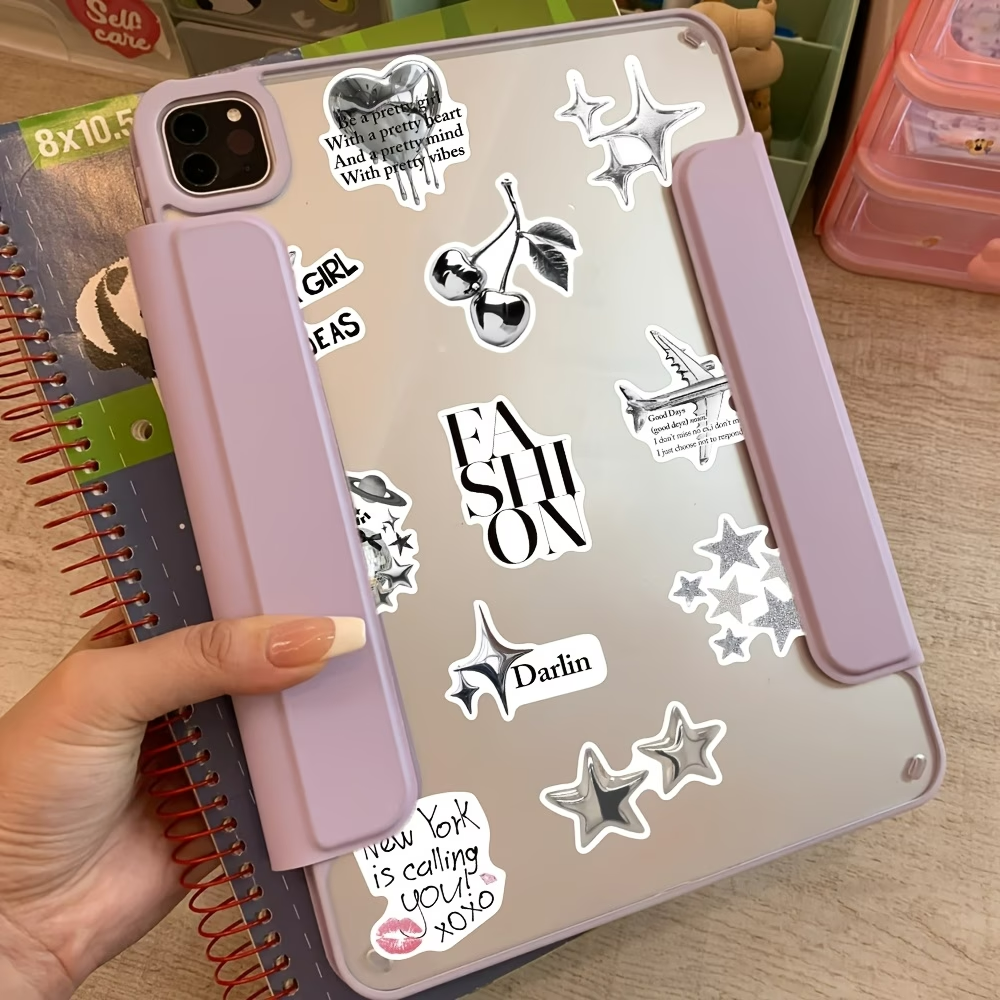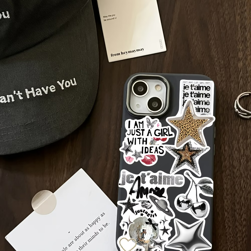 W opakowaniu foliowym. Każda naklejka to inny kształt i wzór, bez powtarzających się. Wymiary podane na jednej z grafik. Przeważnie 4-6cm. W zestawie są dokładnie te naklejki, które są widoczne na grafice. Naklejki doskonale nadają się do ozdabiania książek, laptopów i czytników ebooków, do ozdabiania telefonów komórkowych i tabletów, na pojazdy - rower, samochód, deskorolki i hulajnogi. Możesz ich używać, ozdabiając swoje książki, notesy, dzienniki i terminarze. Ogranicza Cię tylko Twoja wyobraźnia.