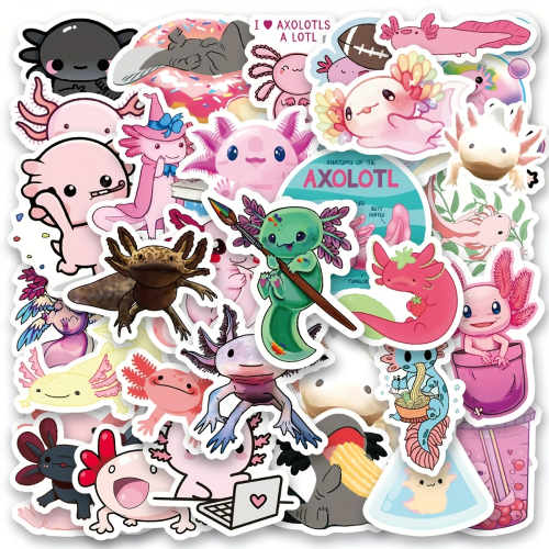 W244 Naklejki STICKER BOMB WLEPY wlepki AXOLOTL aksolotl zabawne kawaii 50szt