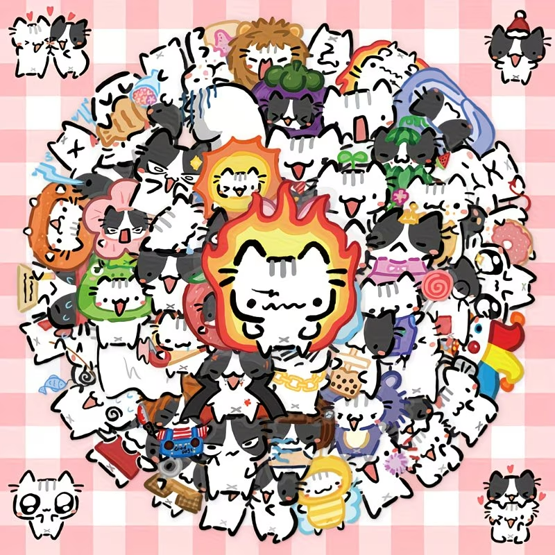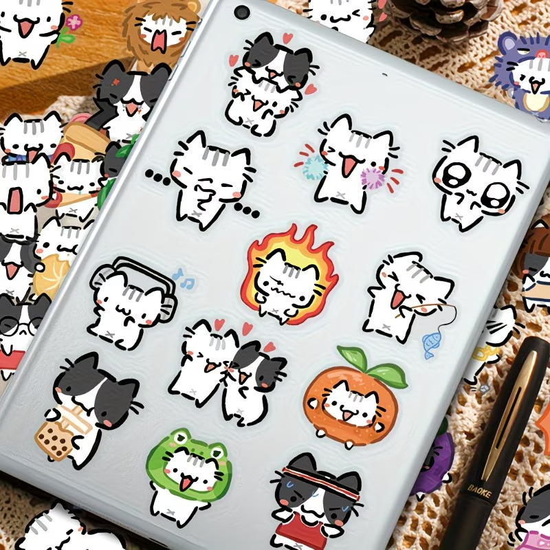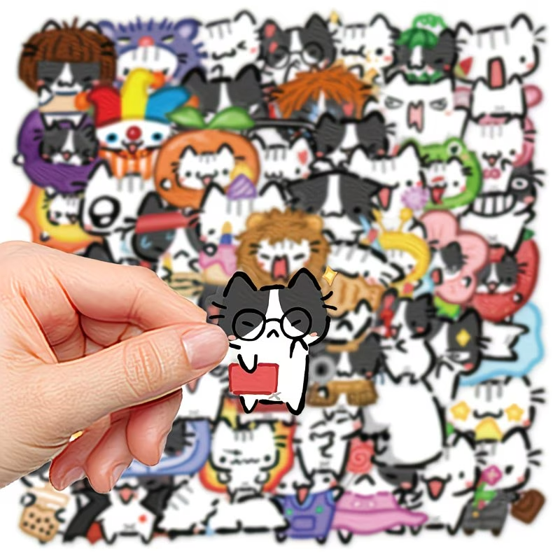 W252 Naklejki STICKER WLEPY PRZEZROCZYSTE koty kotki Basiilleaf cat do żywicy 54szt