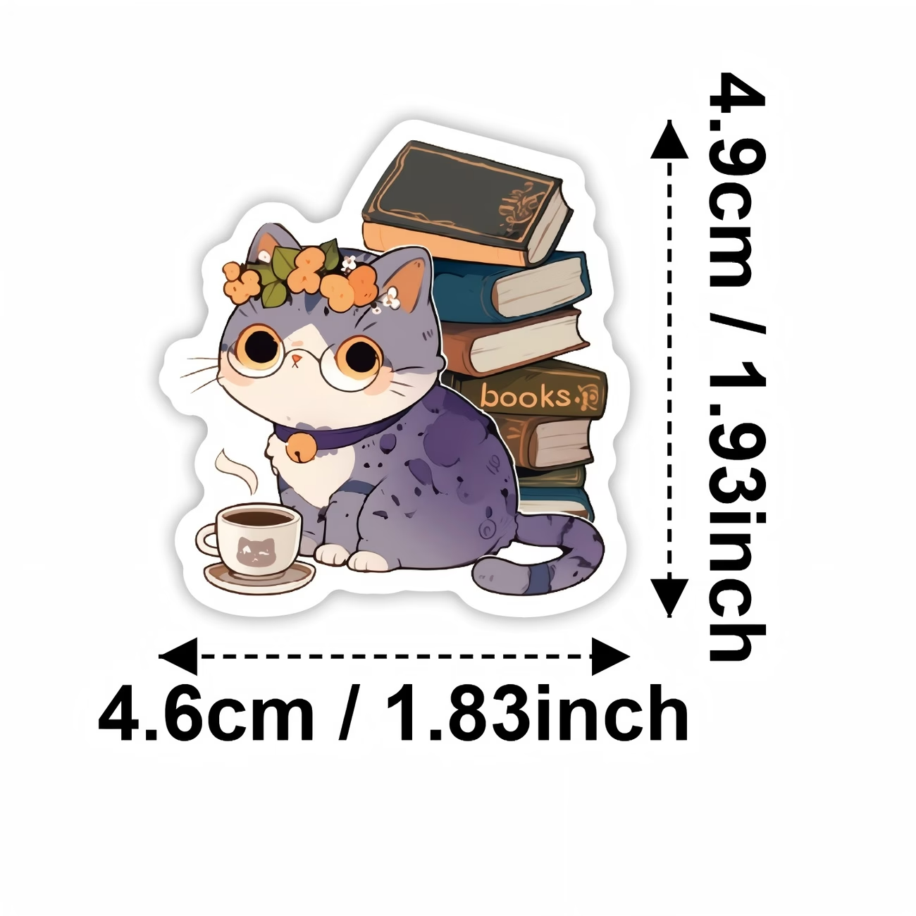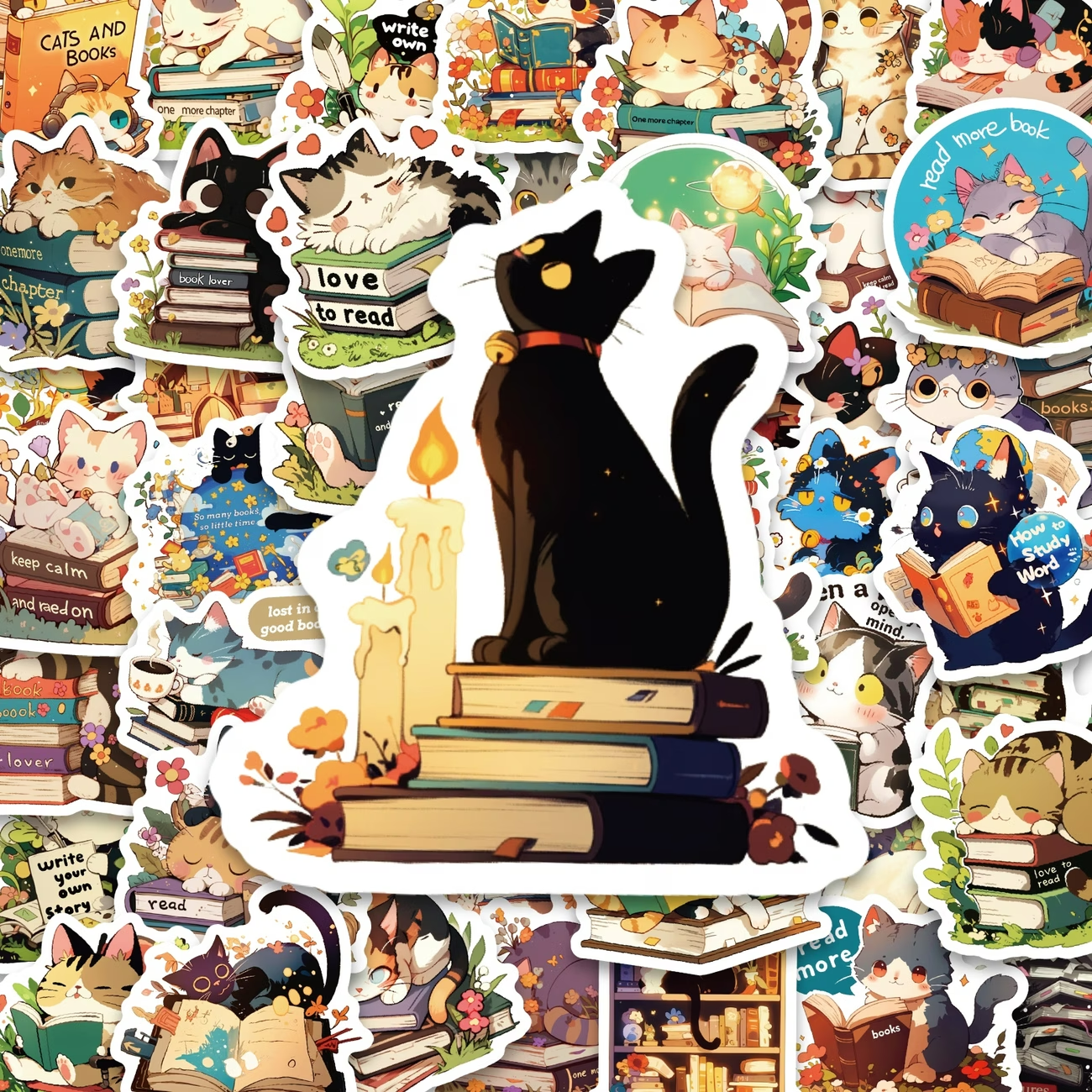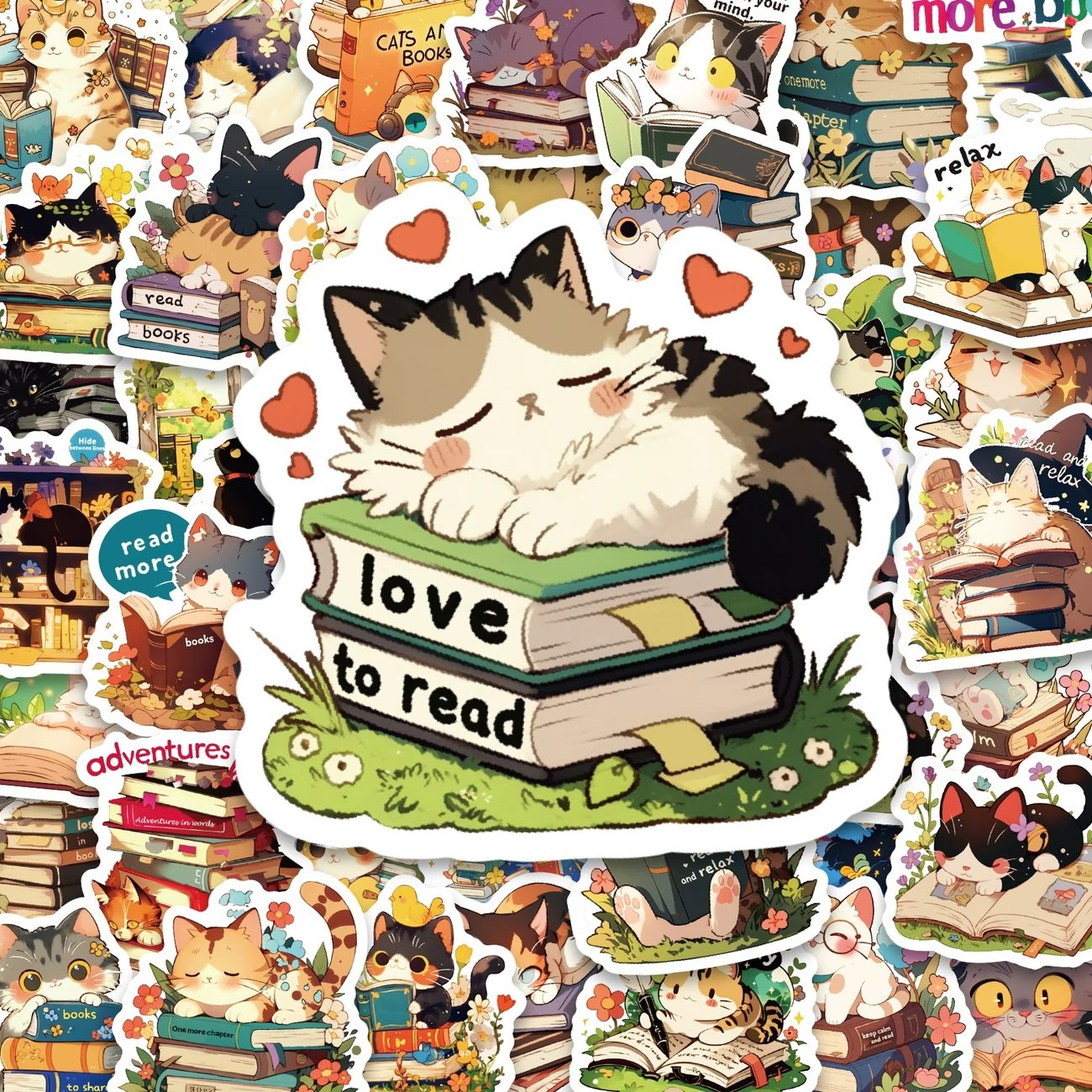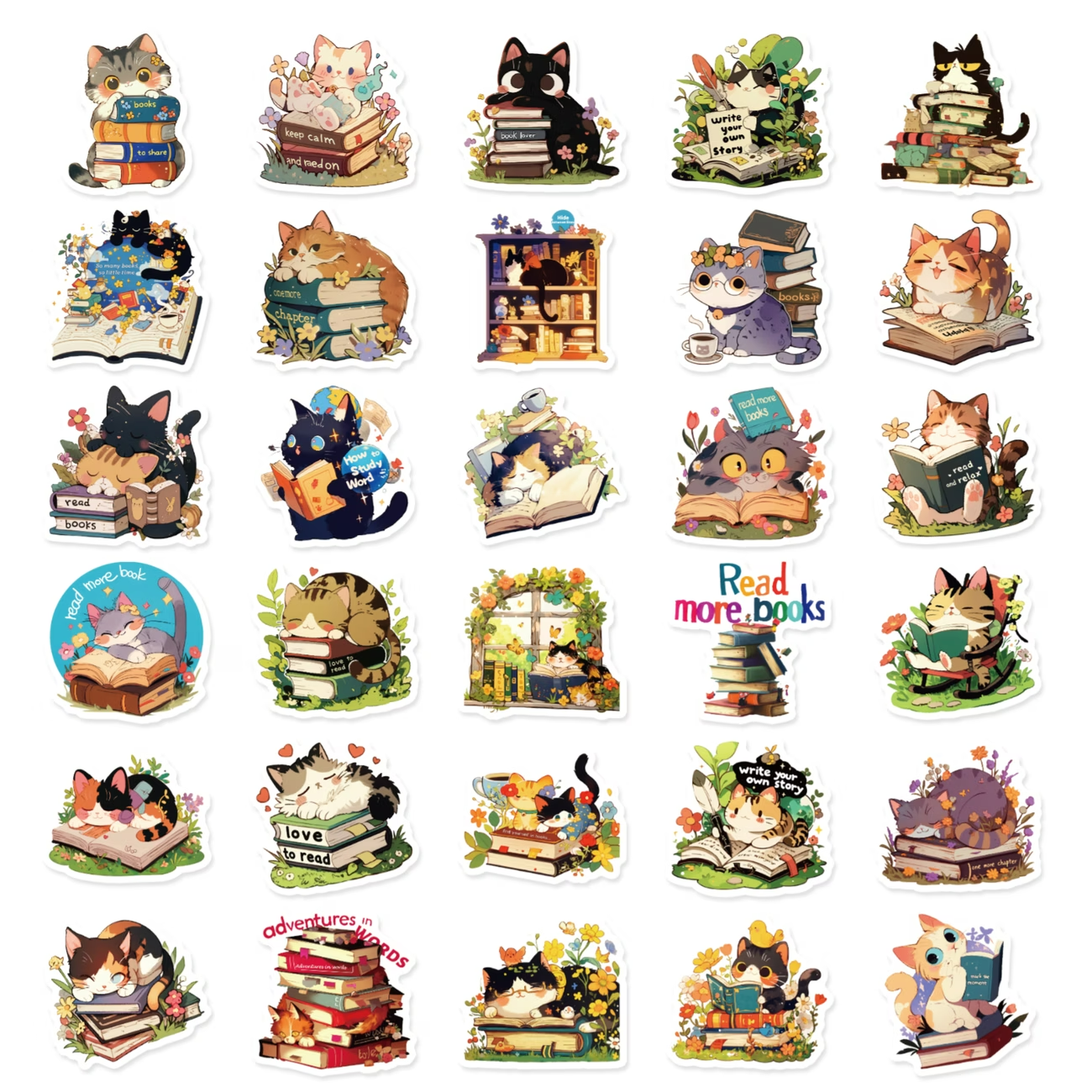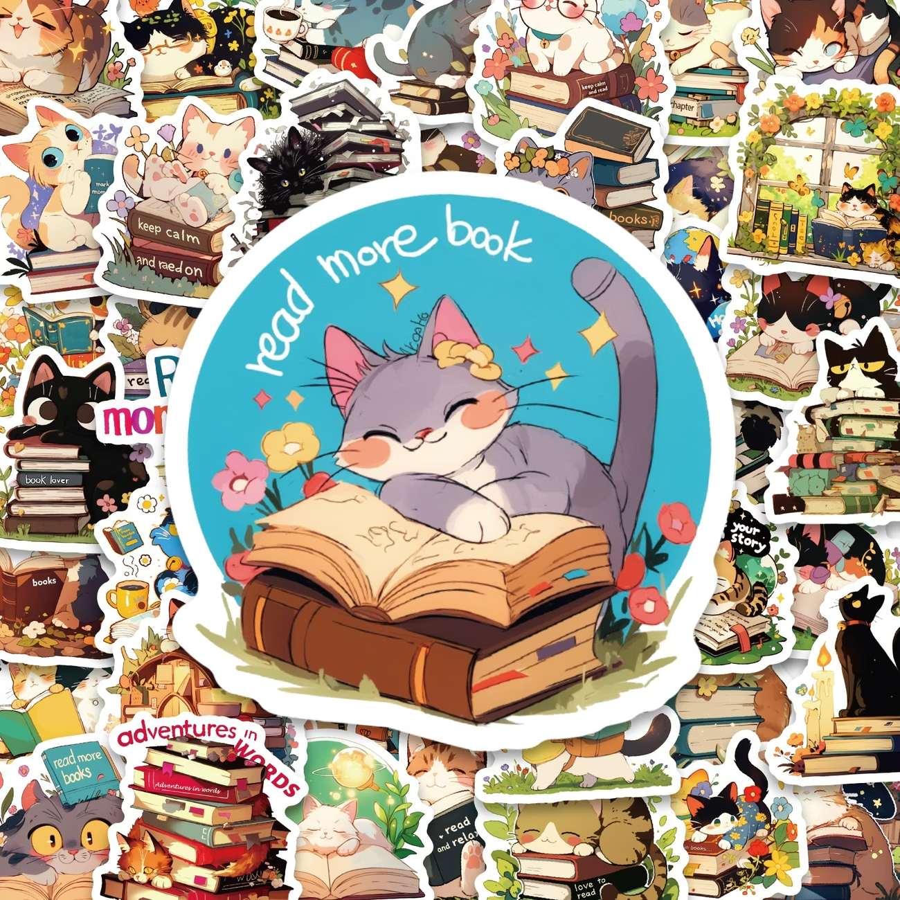 W254 Naklejki laminowane WLEPY wlepki kotek kotki books czytanie książki 50szt