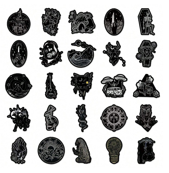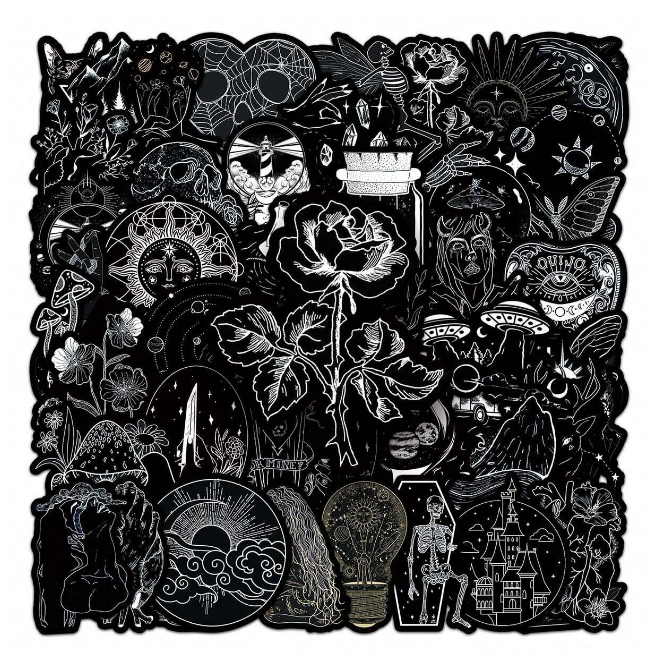 W30 Naklejki STICKER BOMB WLEPY wlepki CZARNE MROK GOTYK na laptop 50sztuk