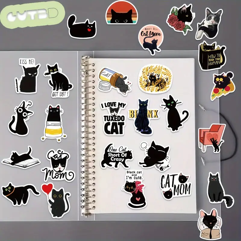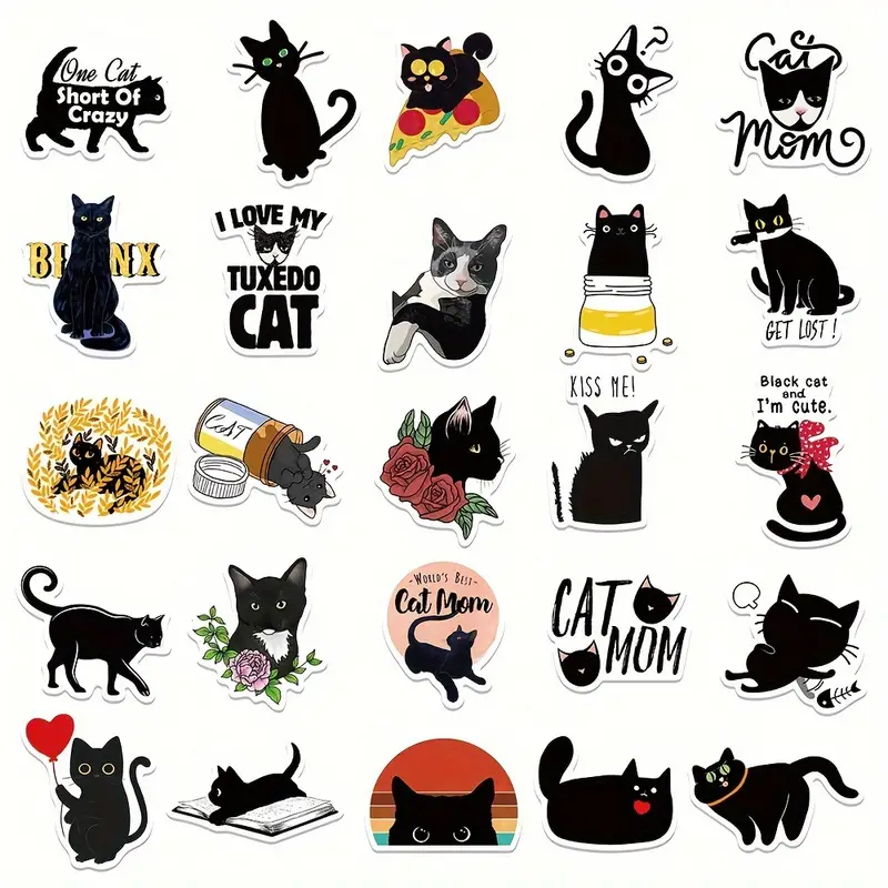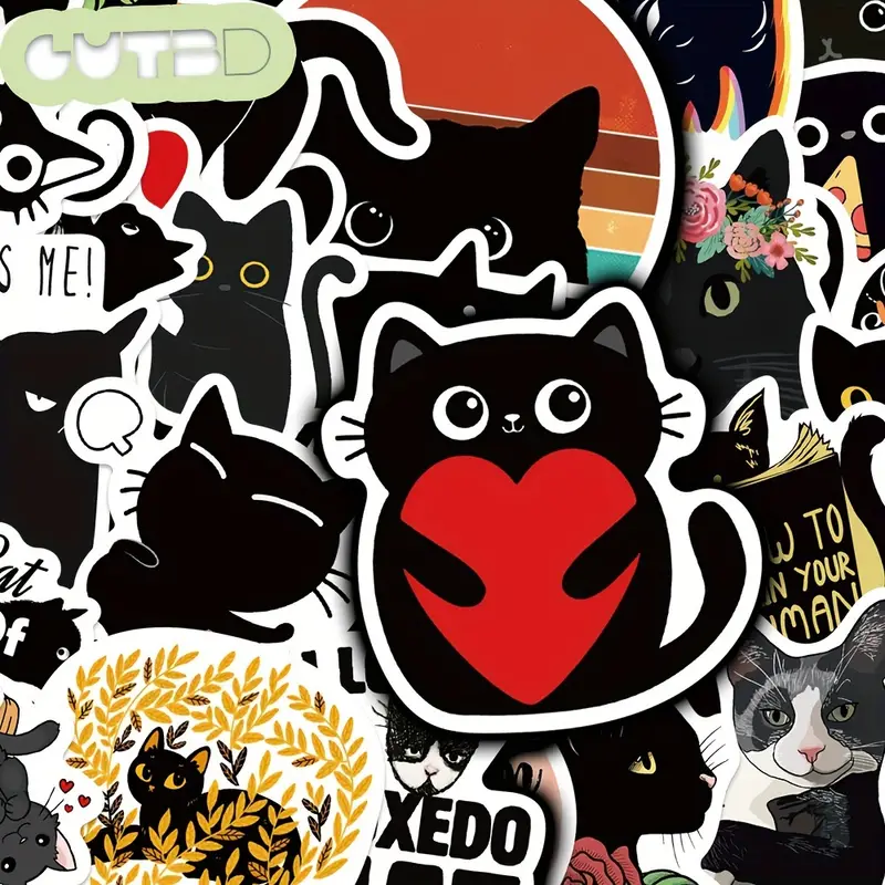 W62 Naklejki STICKER BOMB WLEPY wlepki CZARNY KOT KOTEK KAWAII SŁODKI 50szt