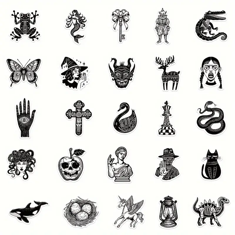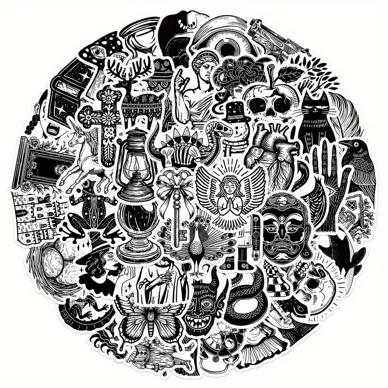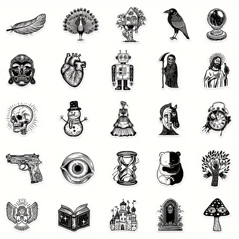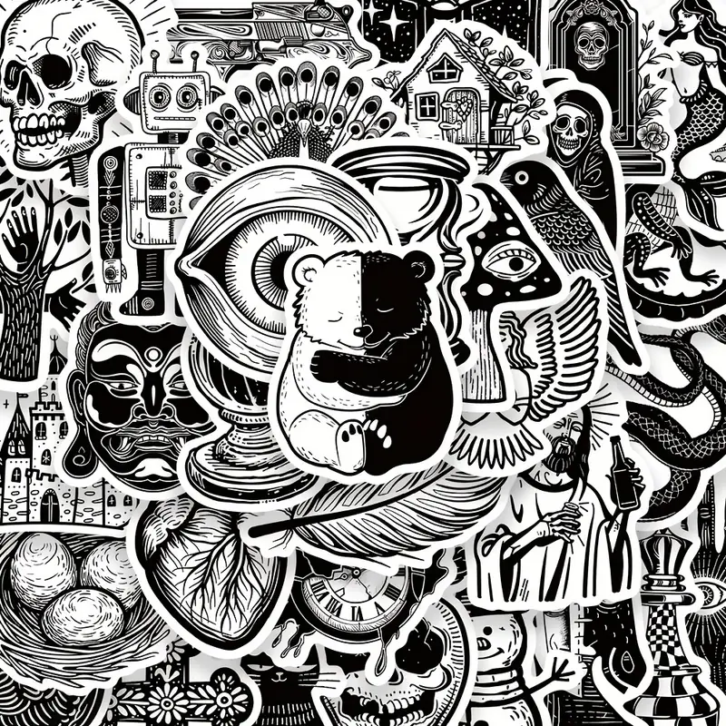 W75 Naklejki STICKER BOMB WLEPY wlepki CZARNO BIAŁE MIKS VINTAGE 50szt