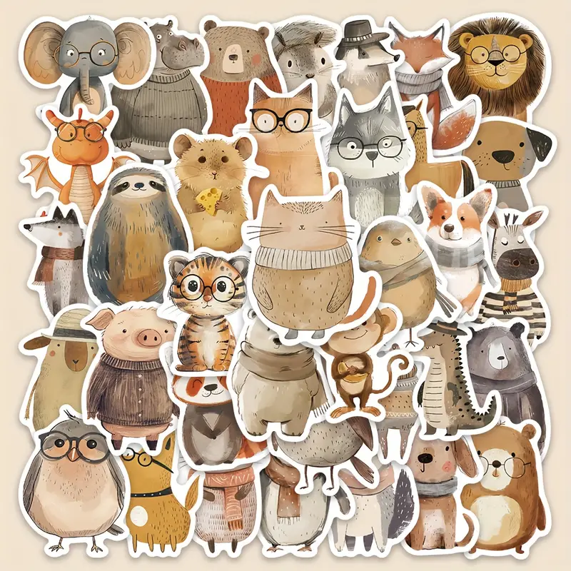 W81 Naklejki STICKER BOMB WLEPY wlepki ZWIERZĘTA RYSUNKOWE KRESKÓWKA 50szt