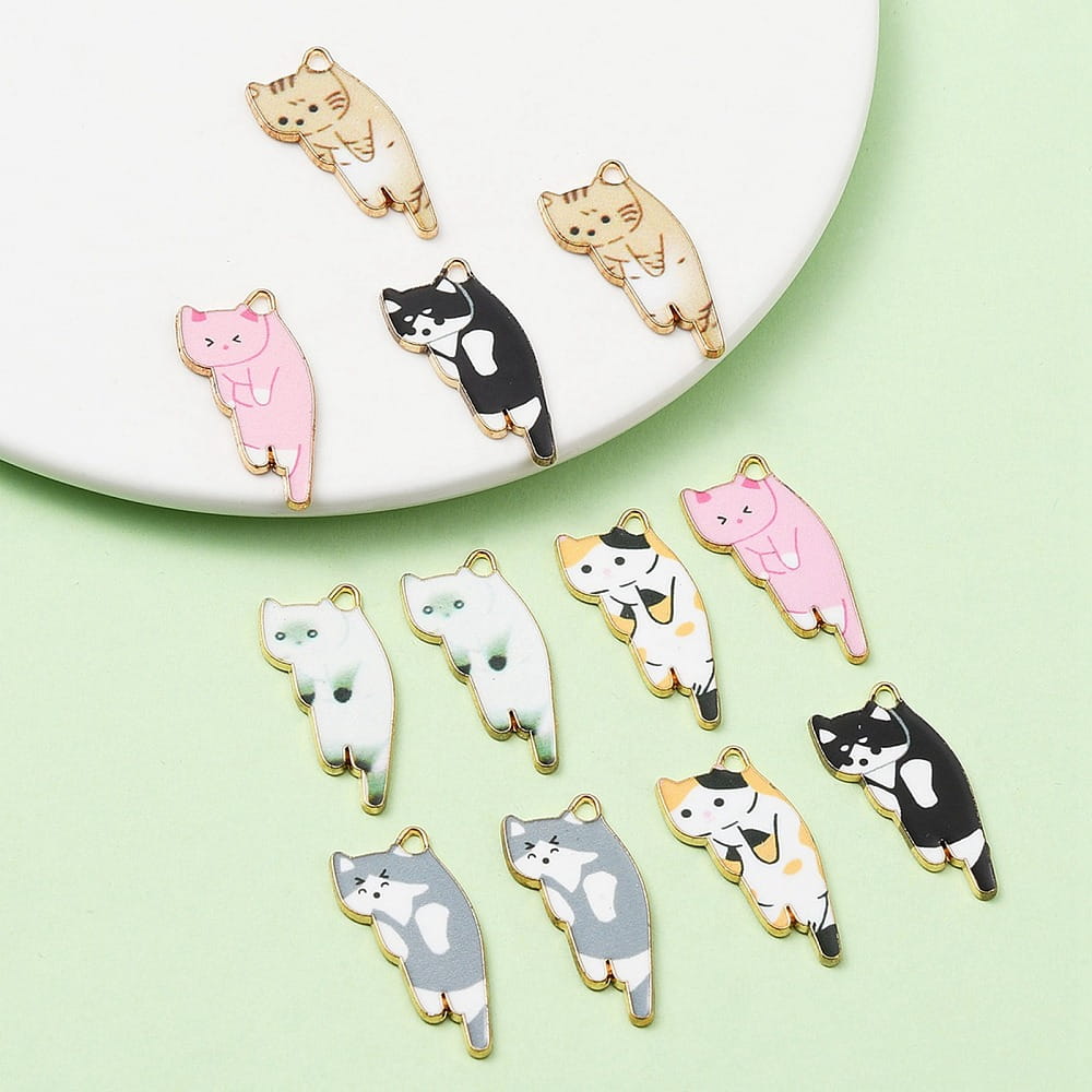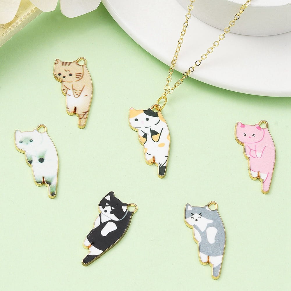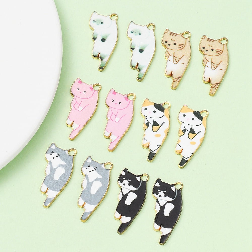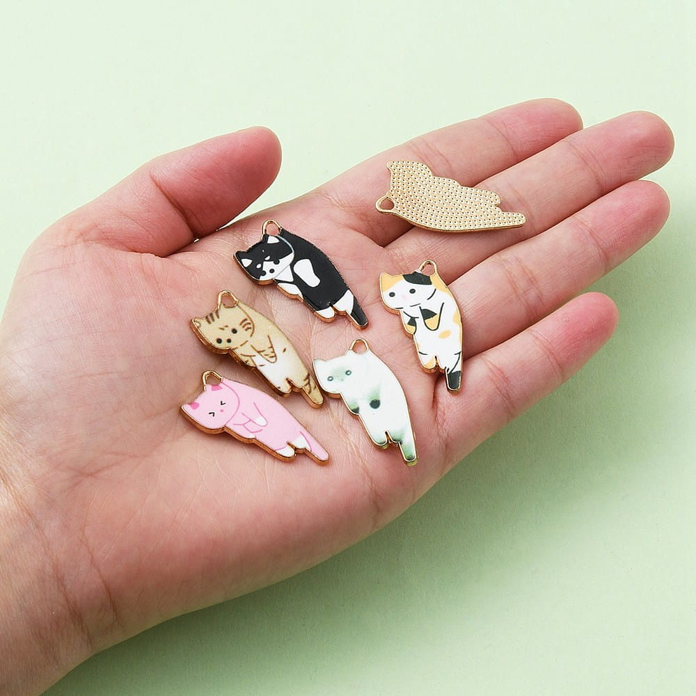 ZAW106 Zawieszki KOTKI kotek zestaw 6szt duże metalowe z emalią