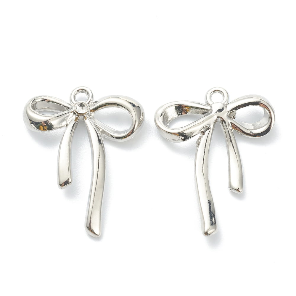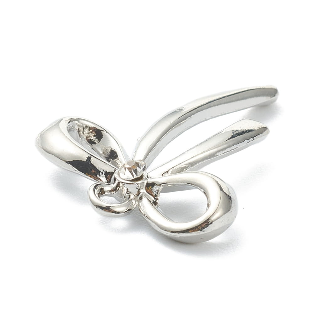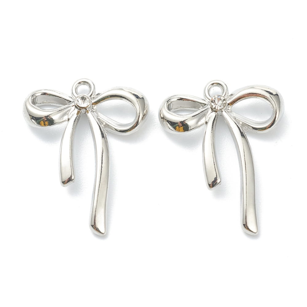 ZAW115 Zawieszki metalowe KOKARDKA kokardki cyrkonia 2szt srebrne