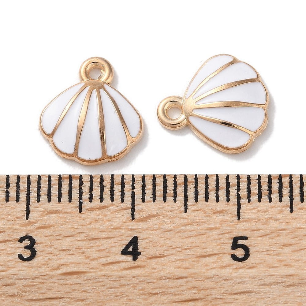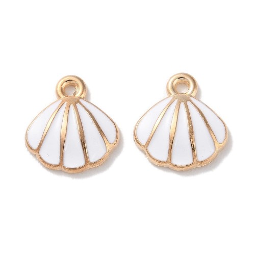 ZAW116 Zawieszki metalowe z emalią muszla MUSZELKA morskie złote 5szt