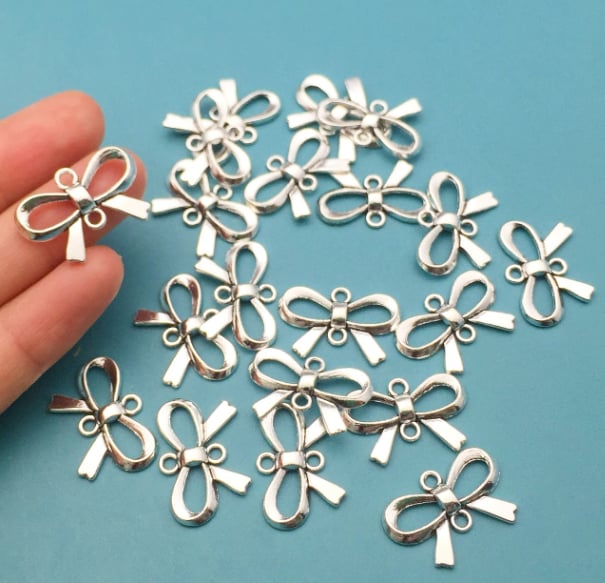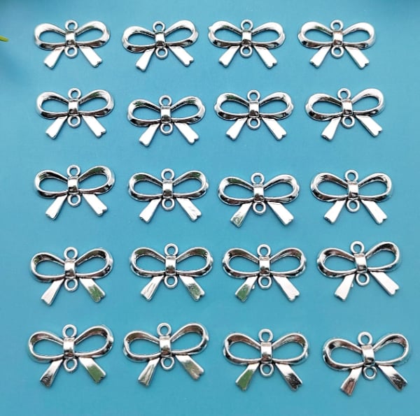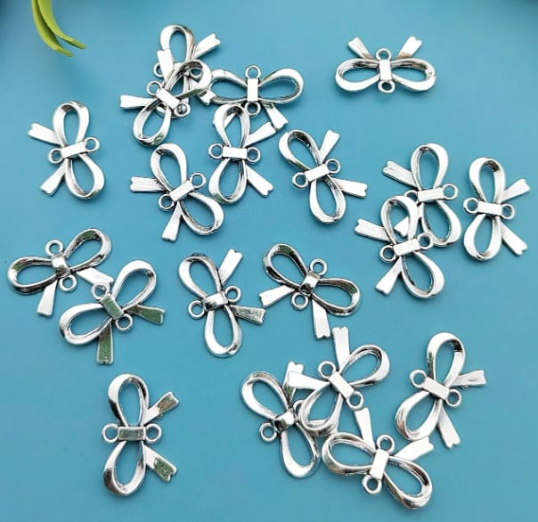 ZAW138 Zawieszki przekładki metalowe łącznik KOKARDKA platynowe 4szt