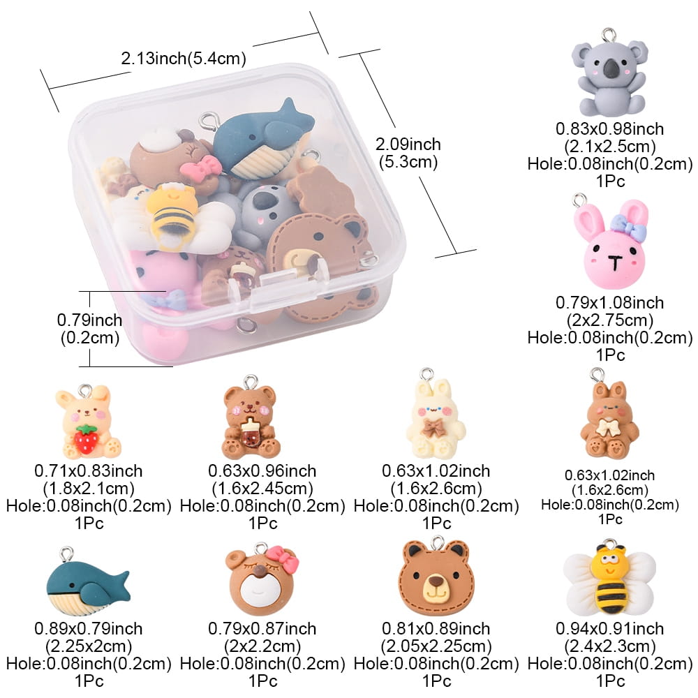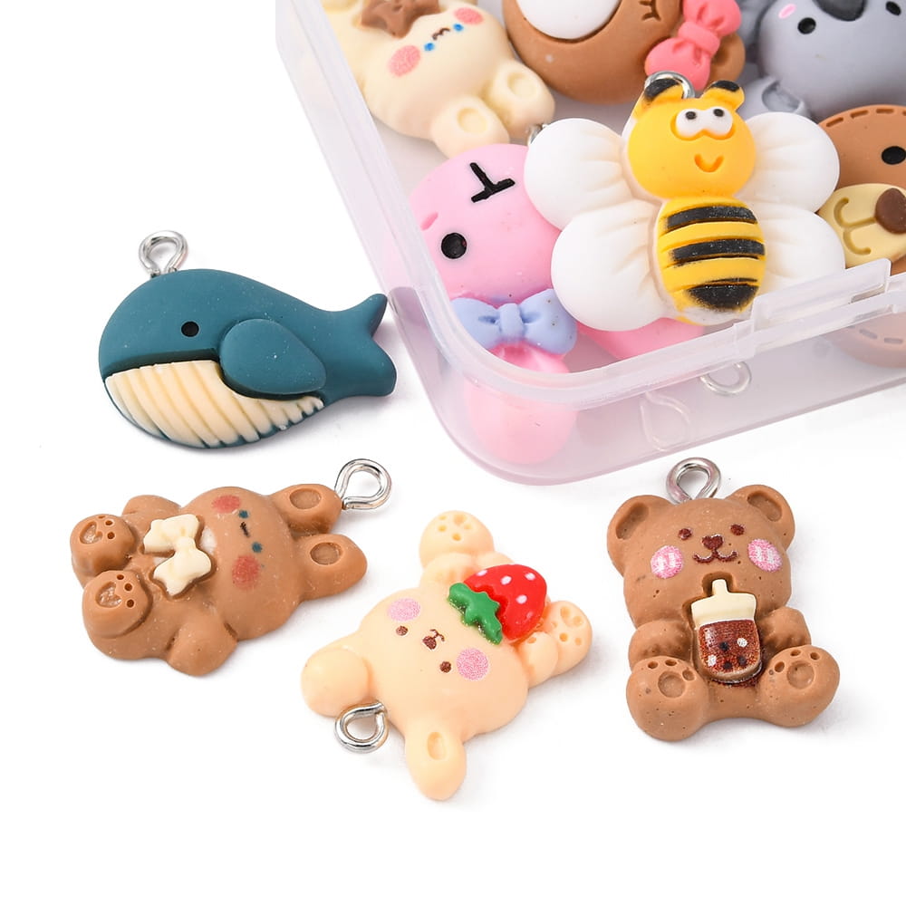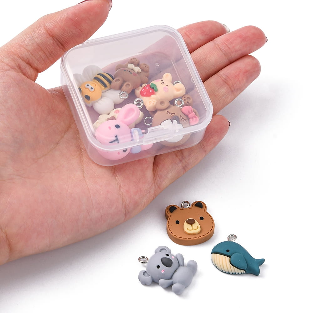 ZAW153 Zawieszki z żywicy KAWAII zwierzątka miś królik misie 10szt miks BOX