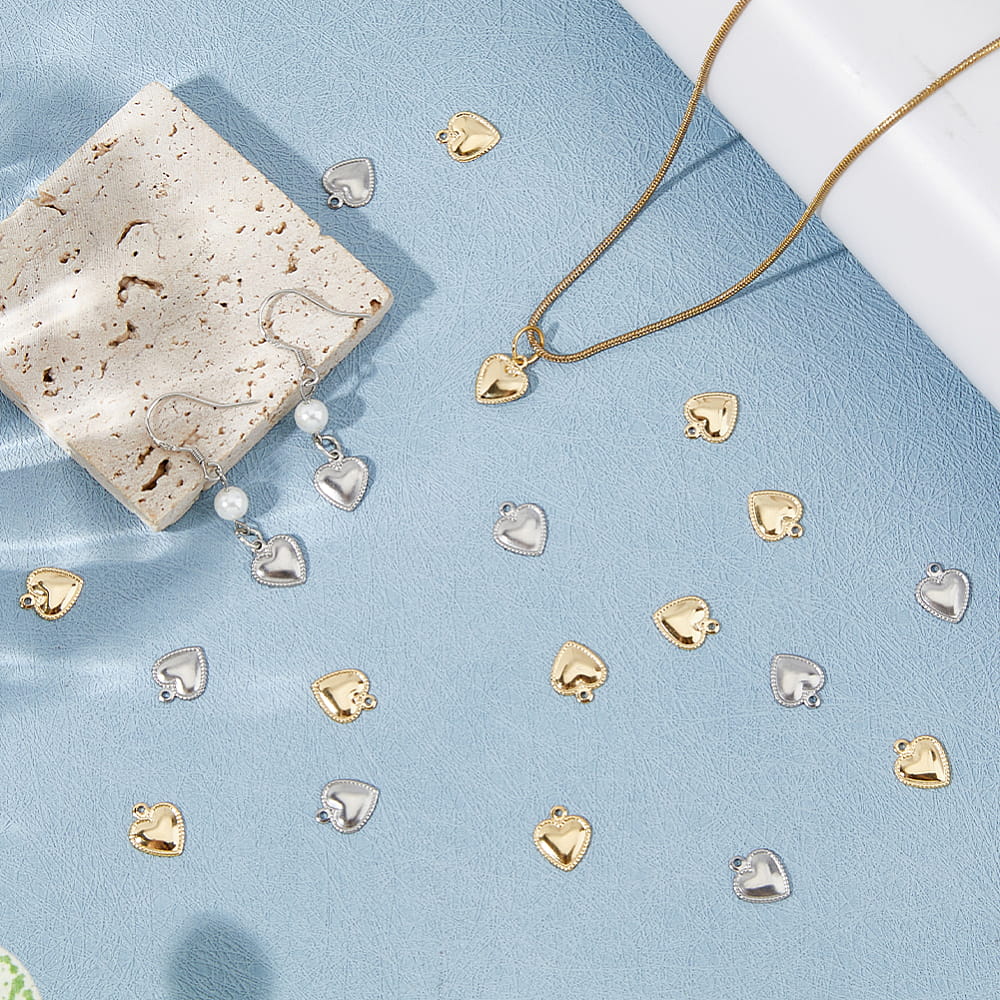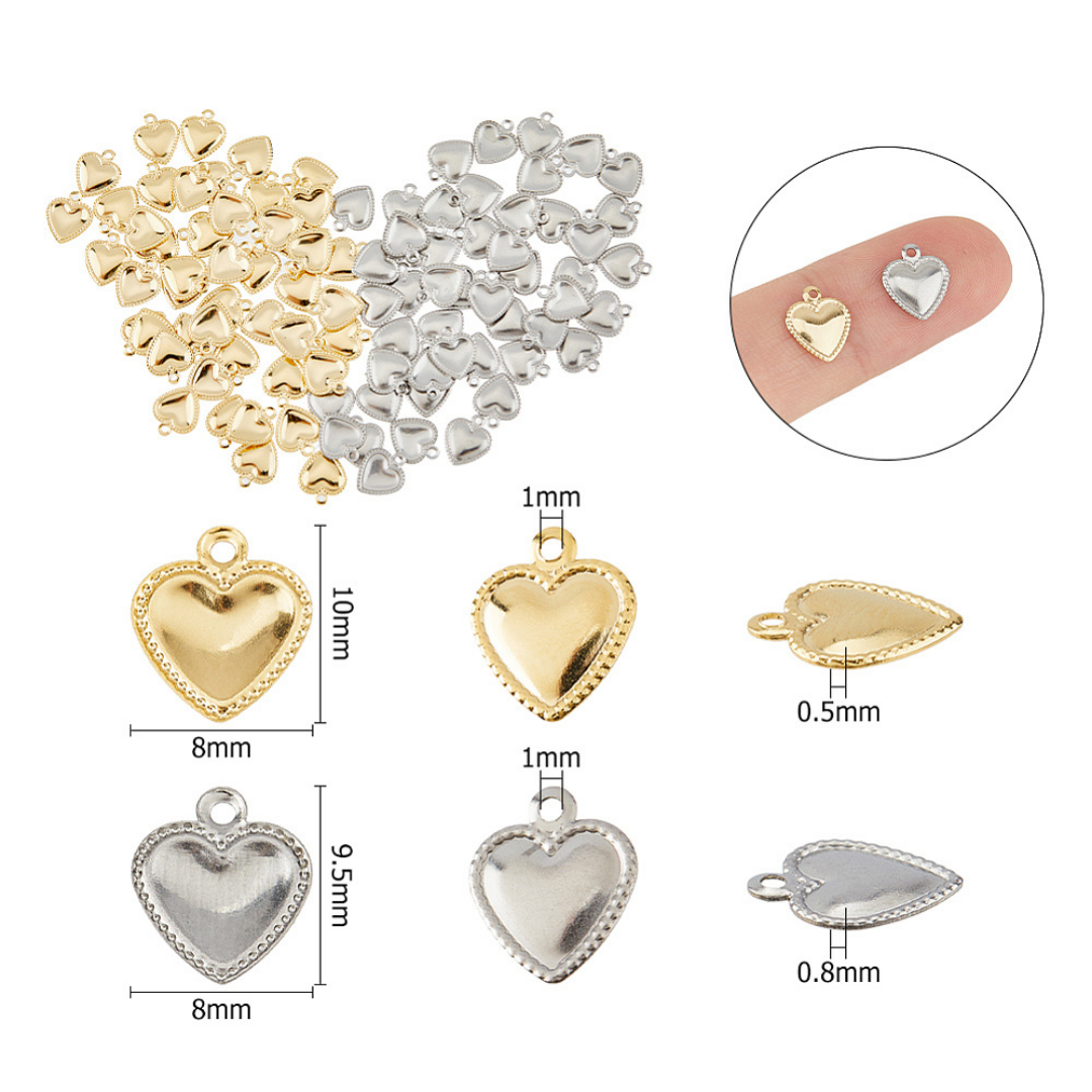 Przepiękne maleńkie zawieszki ze stali nierdzewnej w dwóch kolorach: złotym i stalowym, po 5 sztuk z każdego koloru. Zawieszki są wypukłe z jednej strony i wklęsłe z drugiej, wyjątkowo cieniutkie i delikatne, lekkie, zatem mogą być użyte jako ozdoba kolczyka.