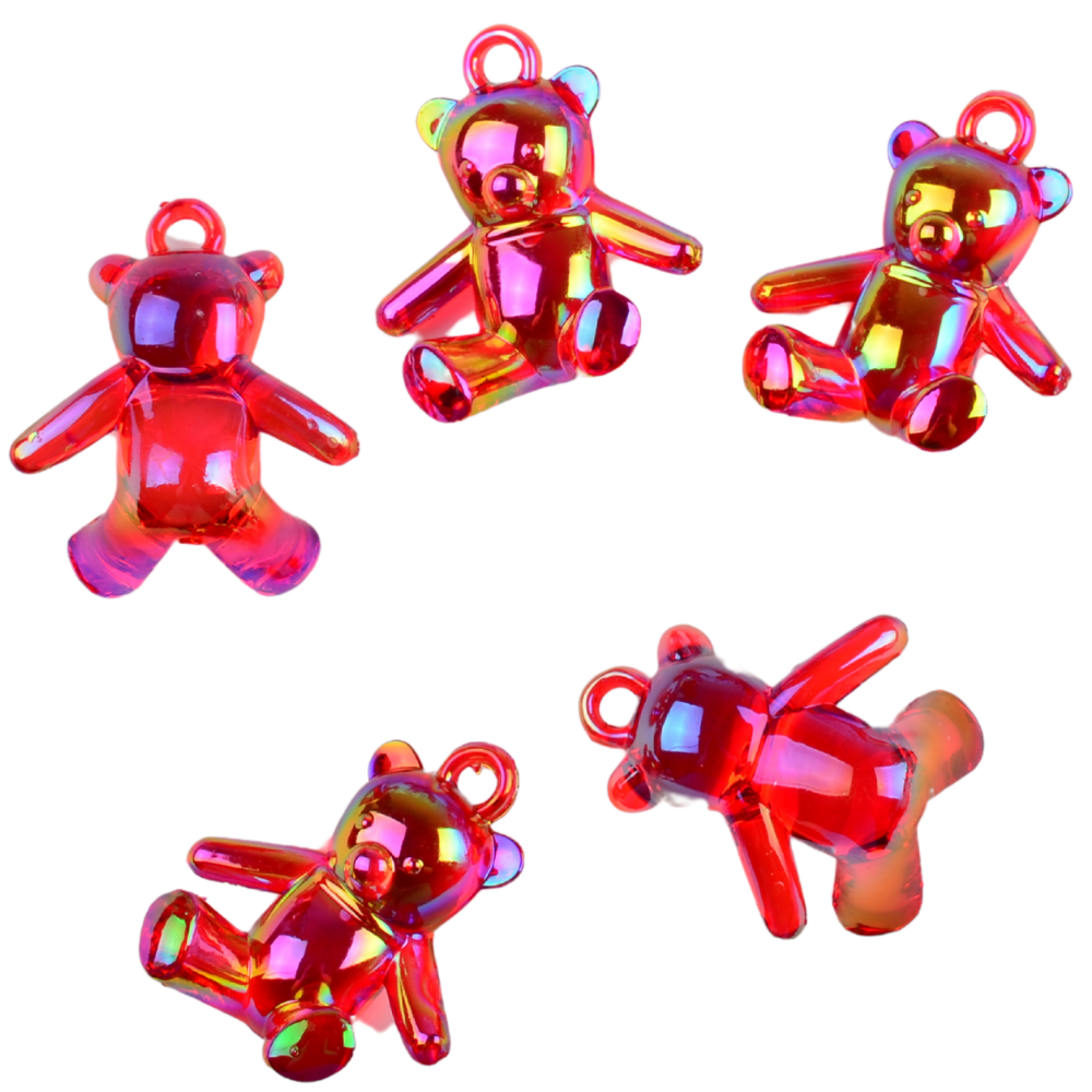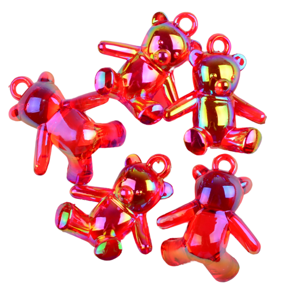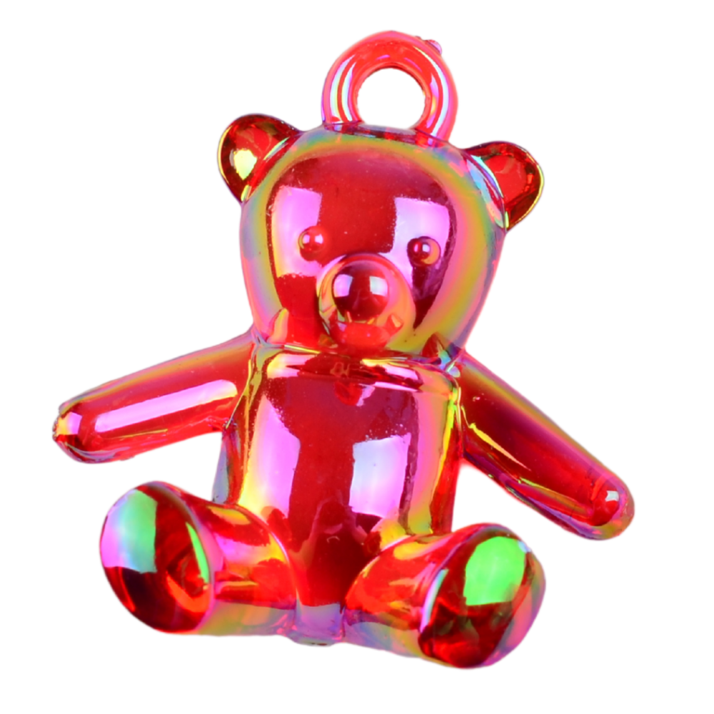 Zawieszka akrylowa MIŚ MISIEK siedzący duża przezroczysta opalizująca czerwona.