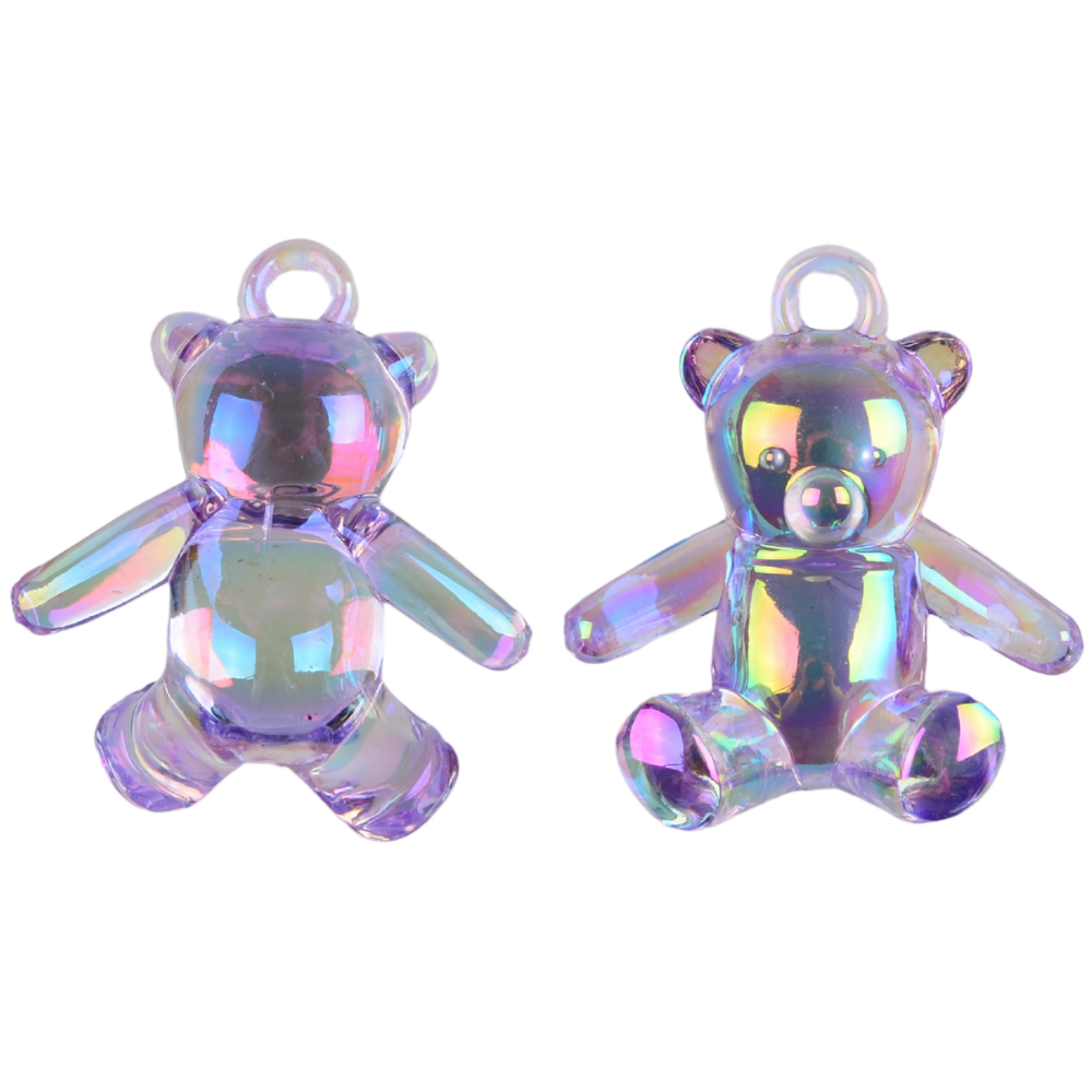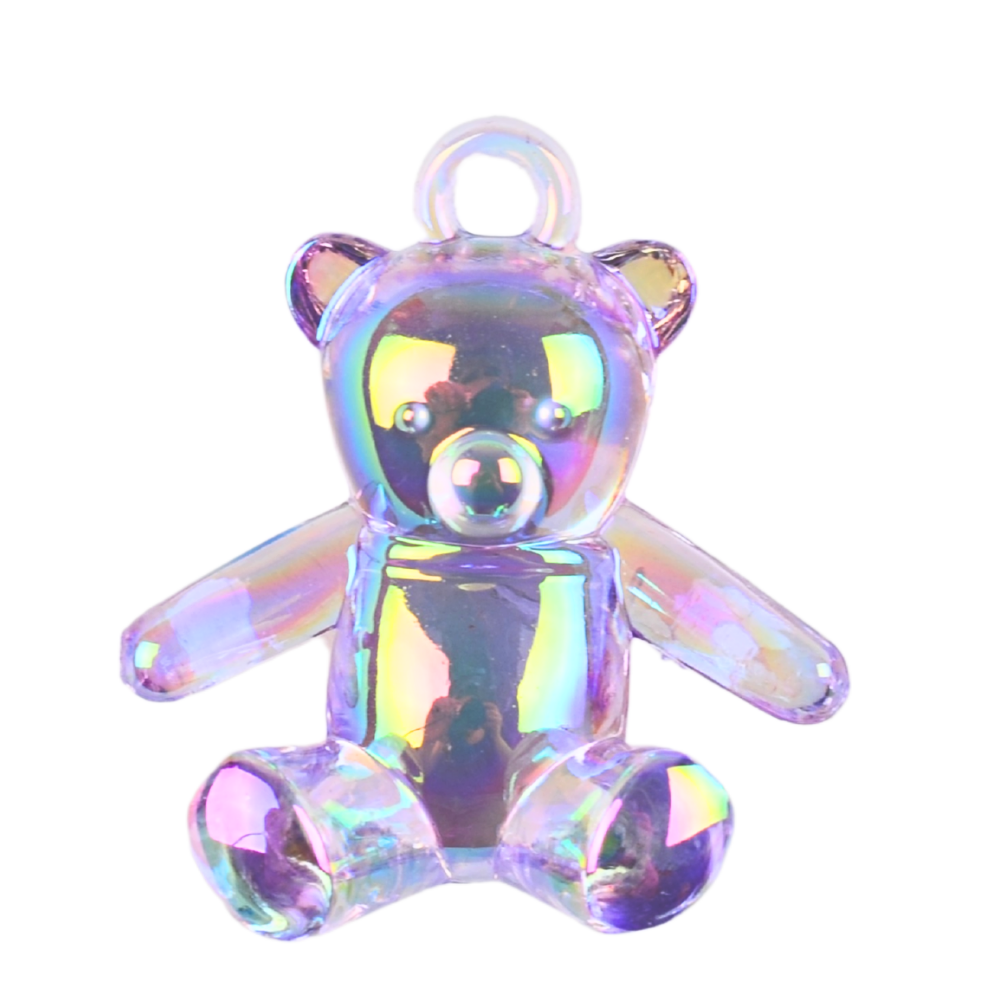 Zawieszka akrylowa MIŚ MISIEK siedzący duża przezroczysta opalizująca fioletowa.