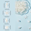 Morskie opowieści, kształty rozgwiazda, konik morski, muszle, muszelki.
