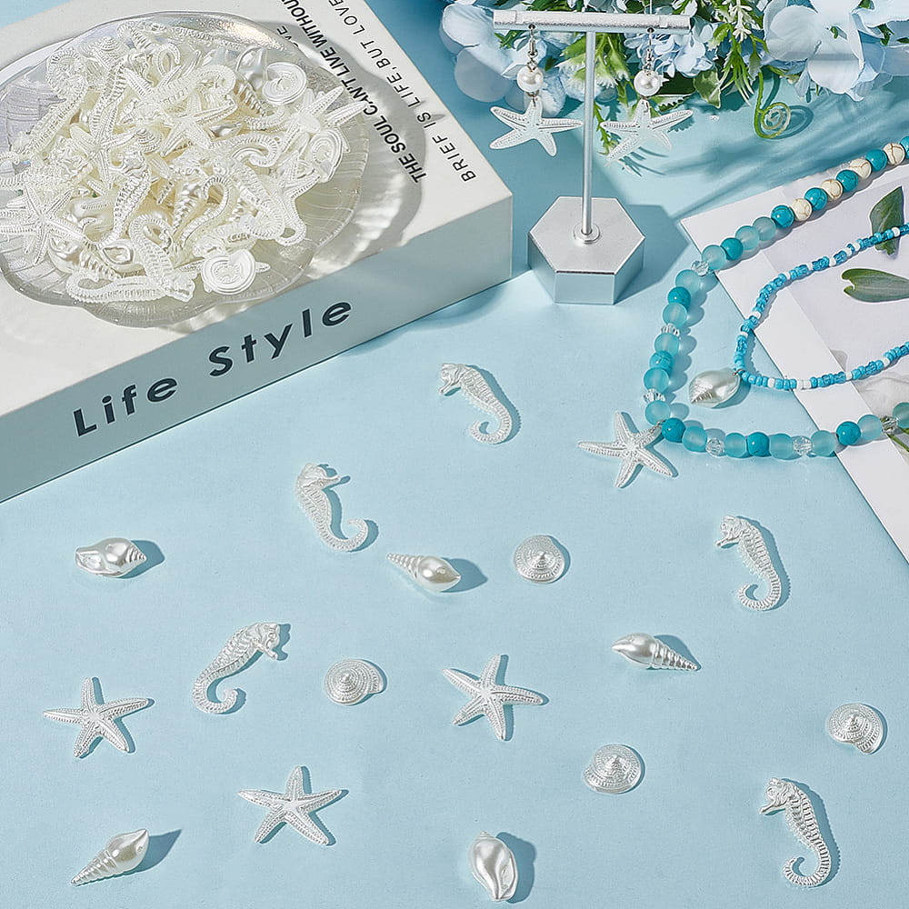 Świetne do różnych wakacyjnych wyrobów biżuteryjnych. Zapakowane w woreczek strunowy. Przeważnie każda zawieszka ma inny wzór, ale zdarzają się podwójne. Do pary kolczyków najlepiej kupić dwa opakowania zawieszek.
