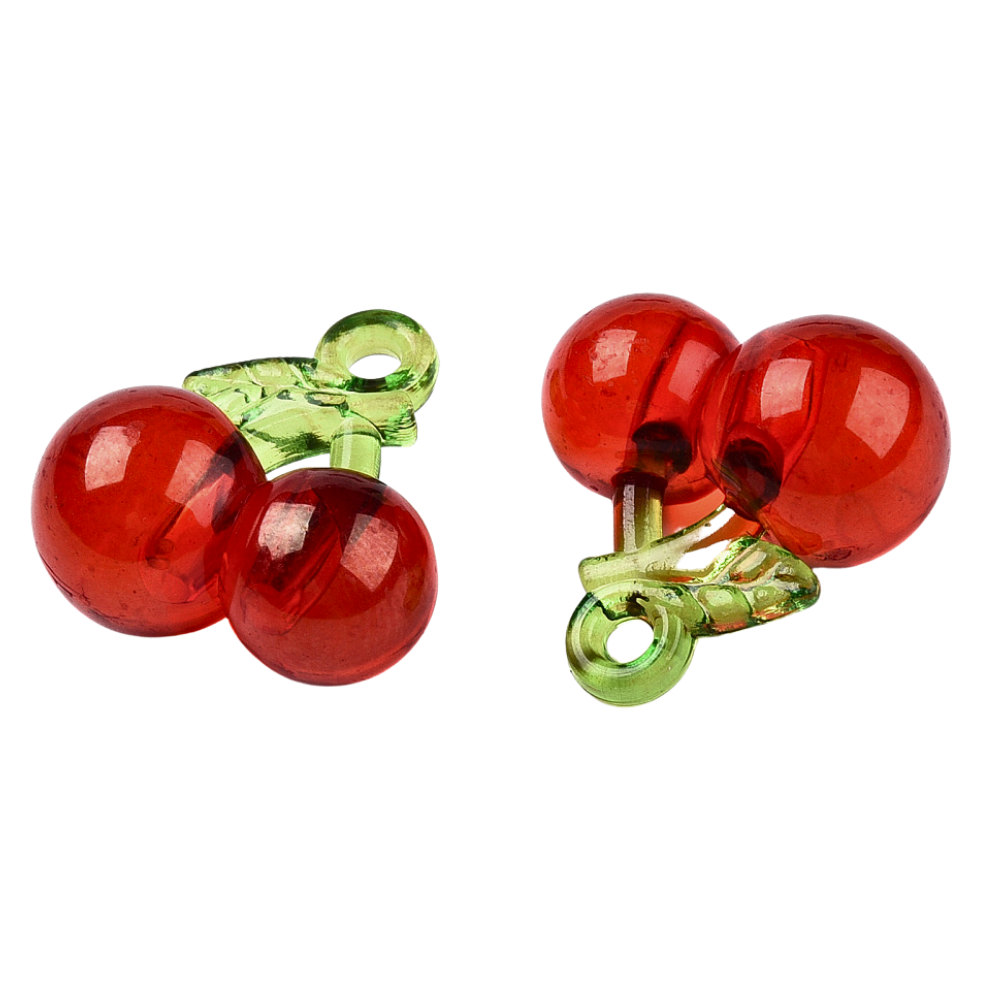 Ładnie wykonane zawieszki akrylowe w kształcie wiśni, lekko transparentne, trwały akryl, nie traci koloru.