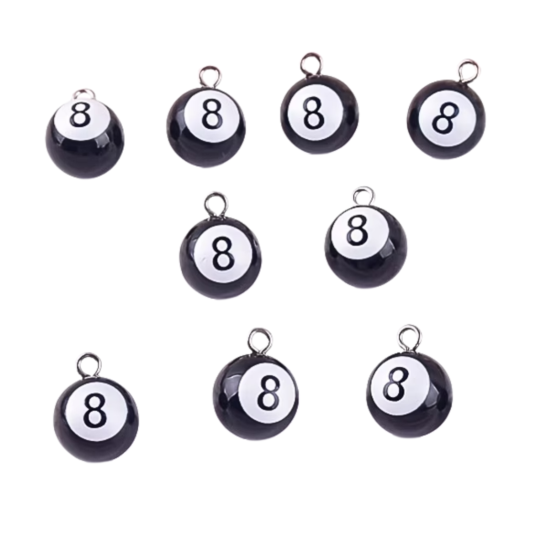 Zestaw ZAWIESZKI CHARM 2 sztuki, kula bilardowa, bilard, ósemka na szczęście.