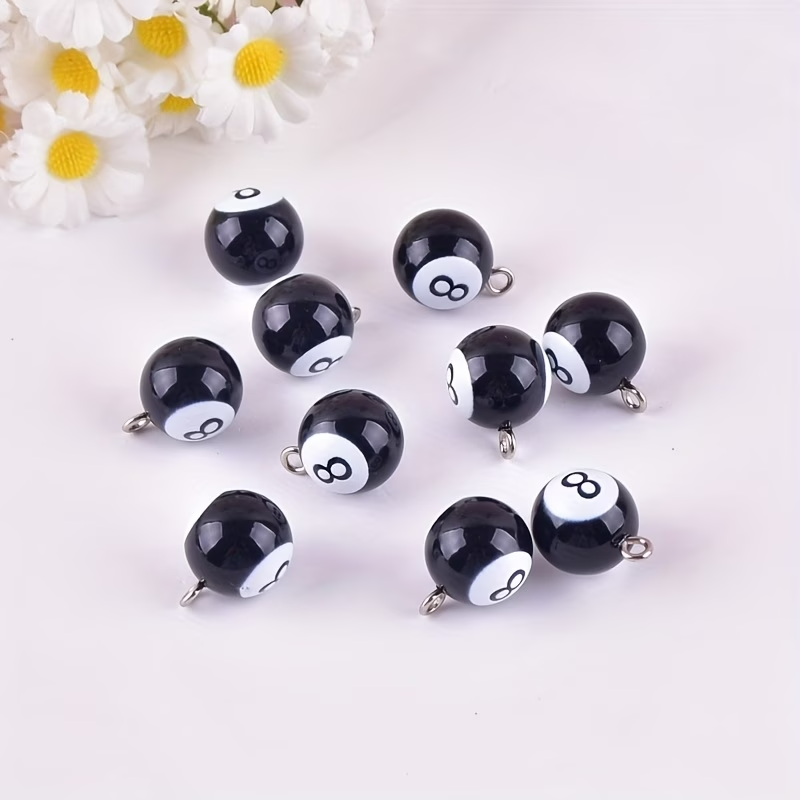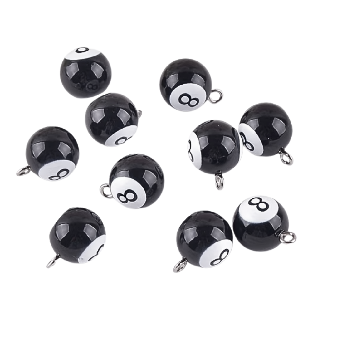 ZAW210 Zawieszki żywica kula bilardowa bilard ósemka 2szt do bransoletek