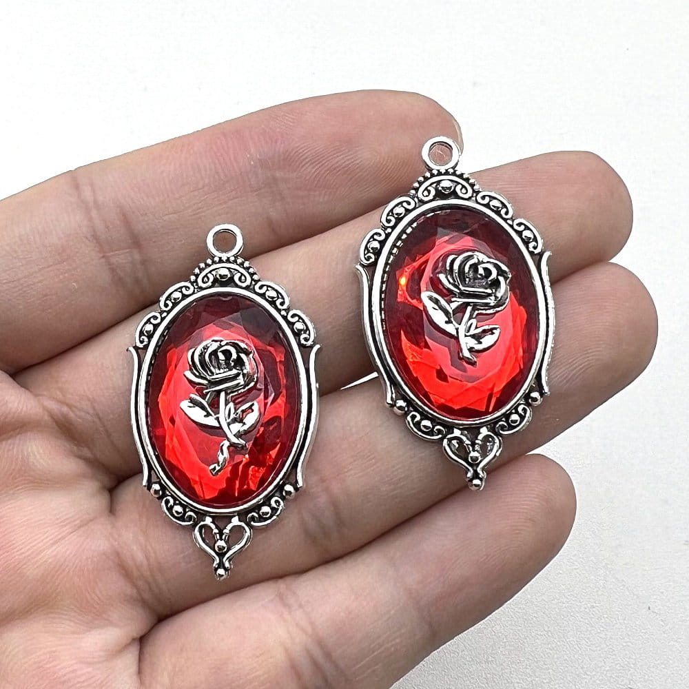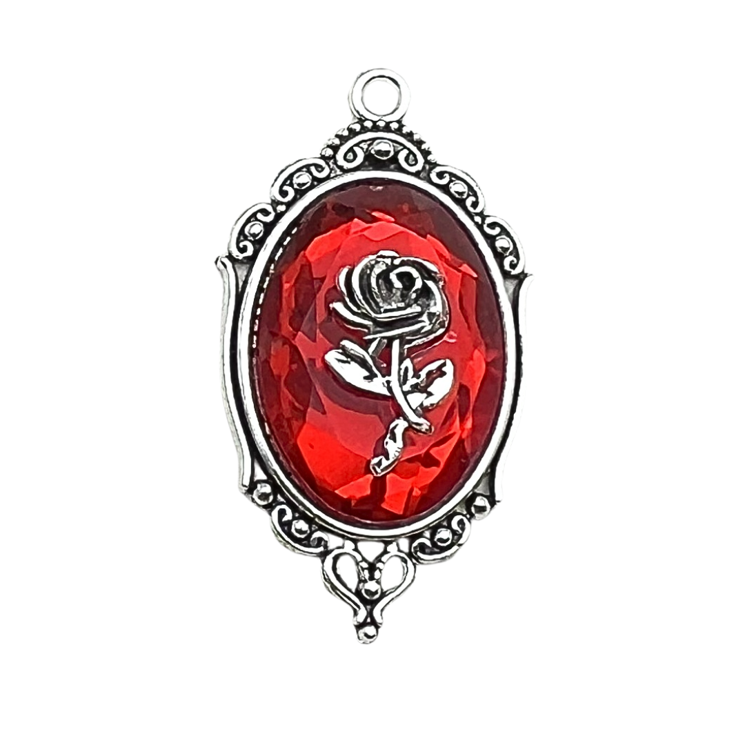 ZAW219 Zawieszka charm duży medalion kamea kryształ róża czerwona 1szt