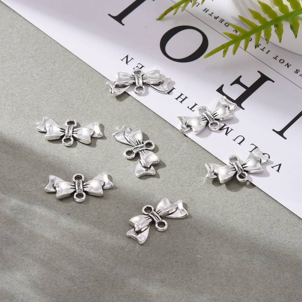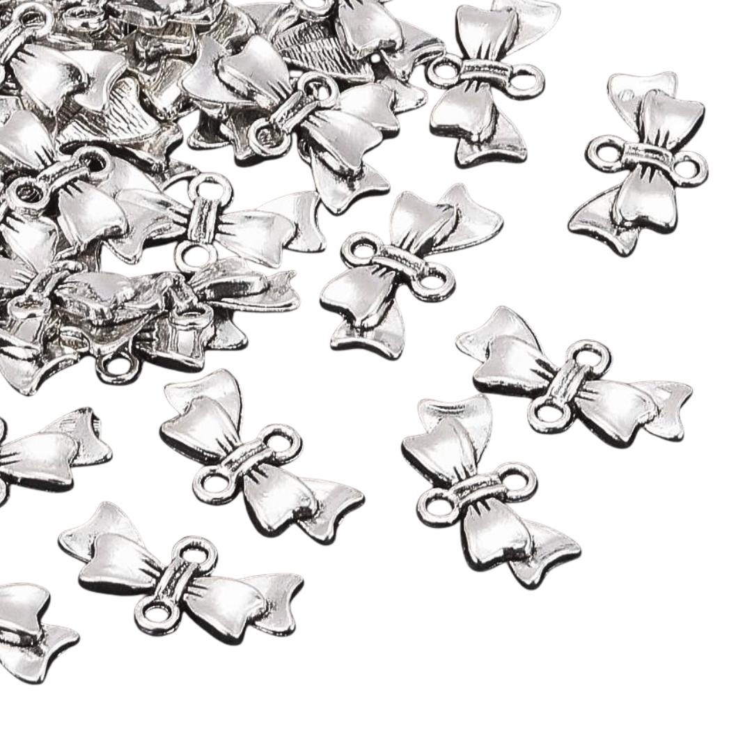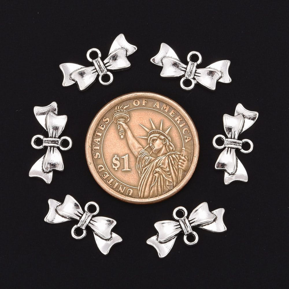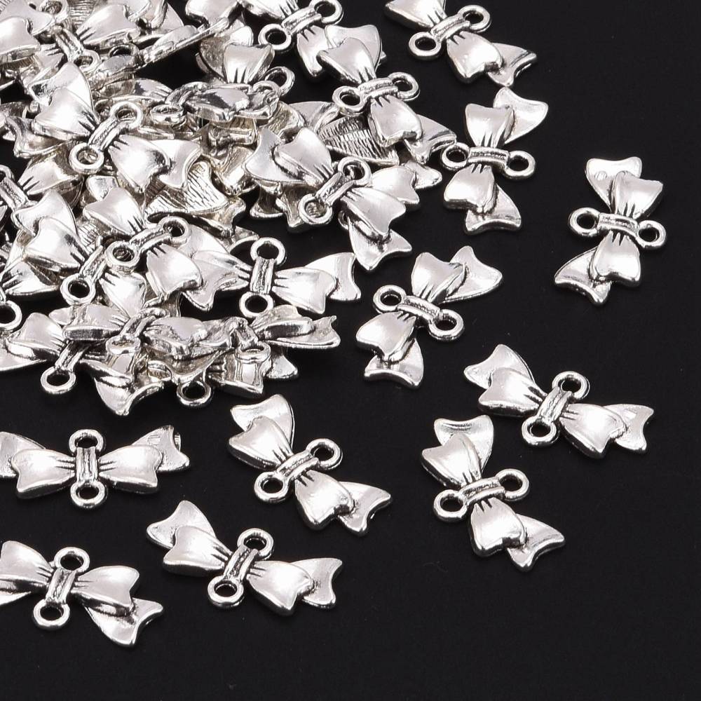 ZAW220 Zawieszki przekładki metalowe łącznik KOKARDKA platynowe 5szt