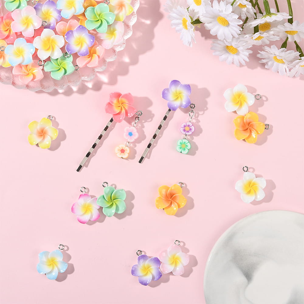 Zestaw ZAWIESZKI CHARM przepiękne kwiaty, PLUMERIA, Kwiat Lei, hibiskus.